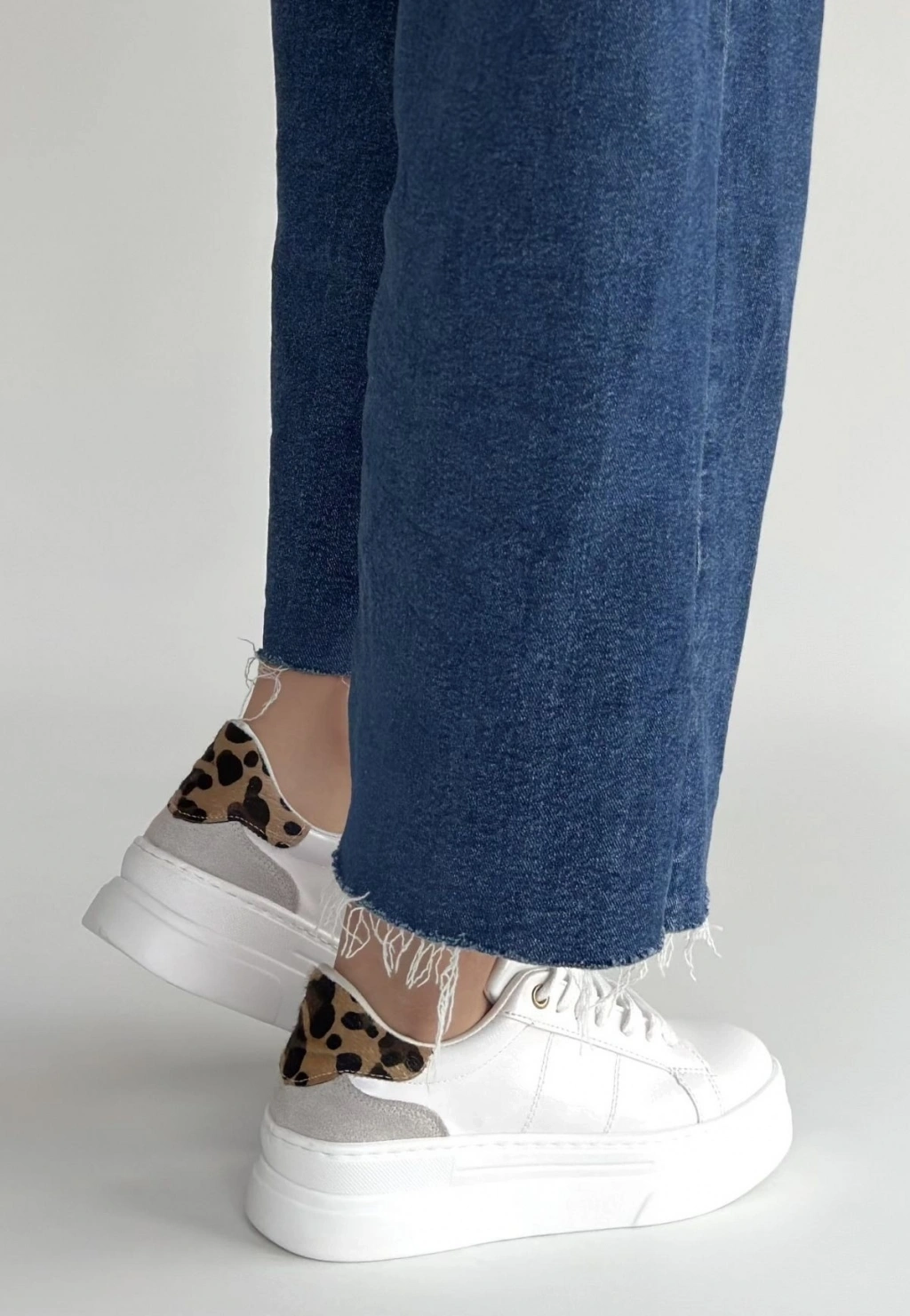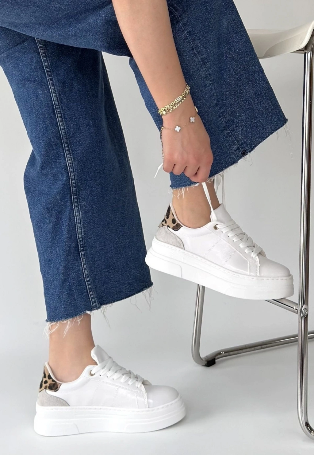 Jiten Beyaz Desenli Deri Bağcıklı Spor Ayakkabı