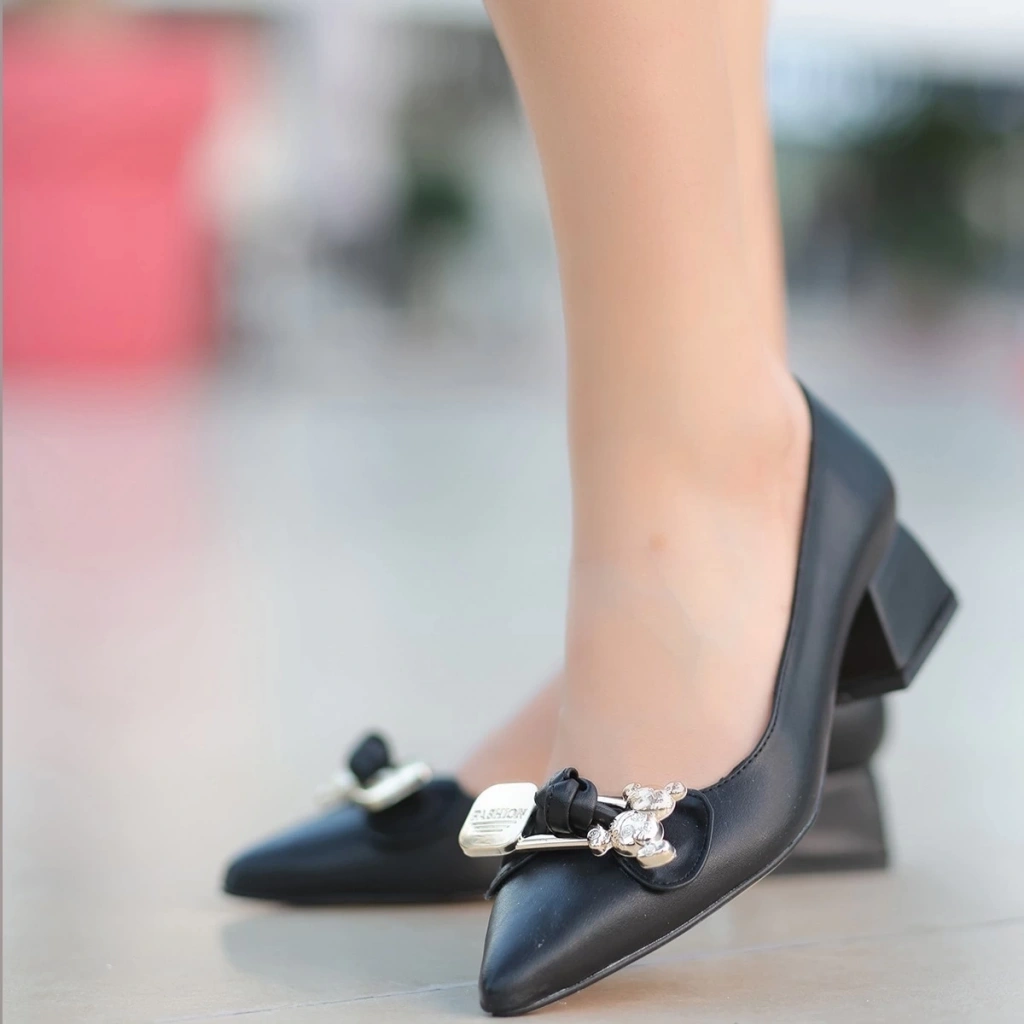 Jedda Siyah Simli Cilt Topuklu Ayakkabı