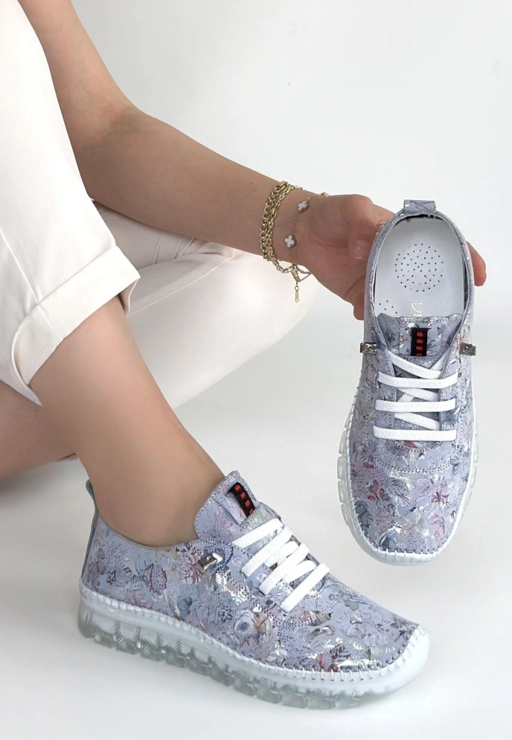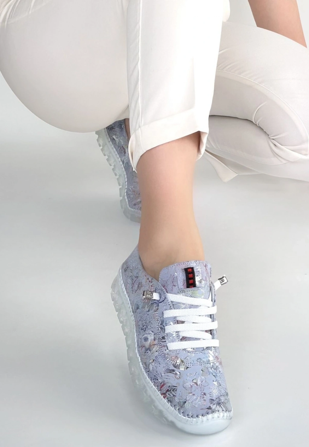 Jiten Beyaz Desenli Deri Bağcıklı Spor Ayakkabı