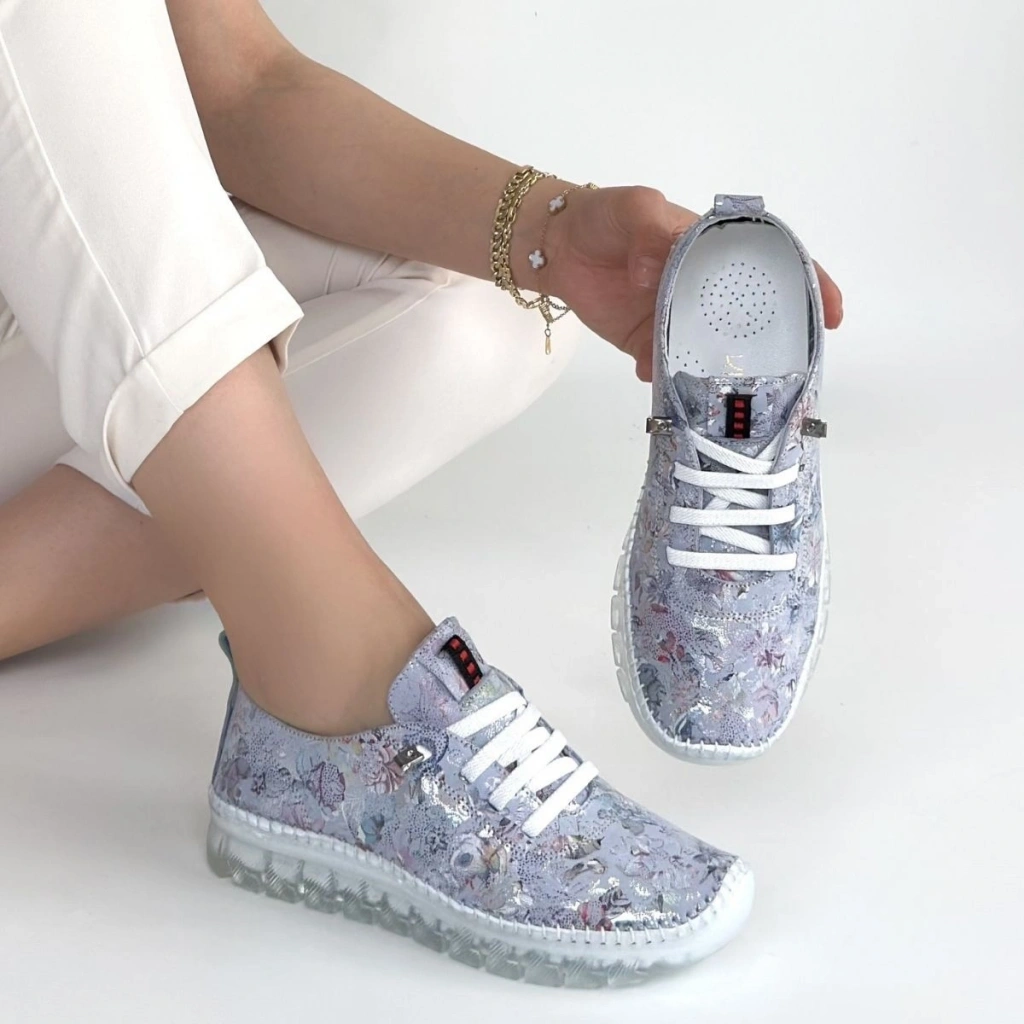 Jiten Lila Desenli Deri Bağcıklı Spor Ayakkabı