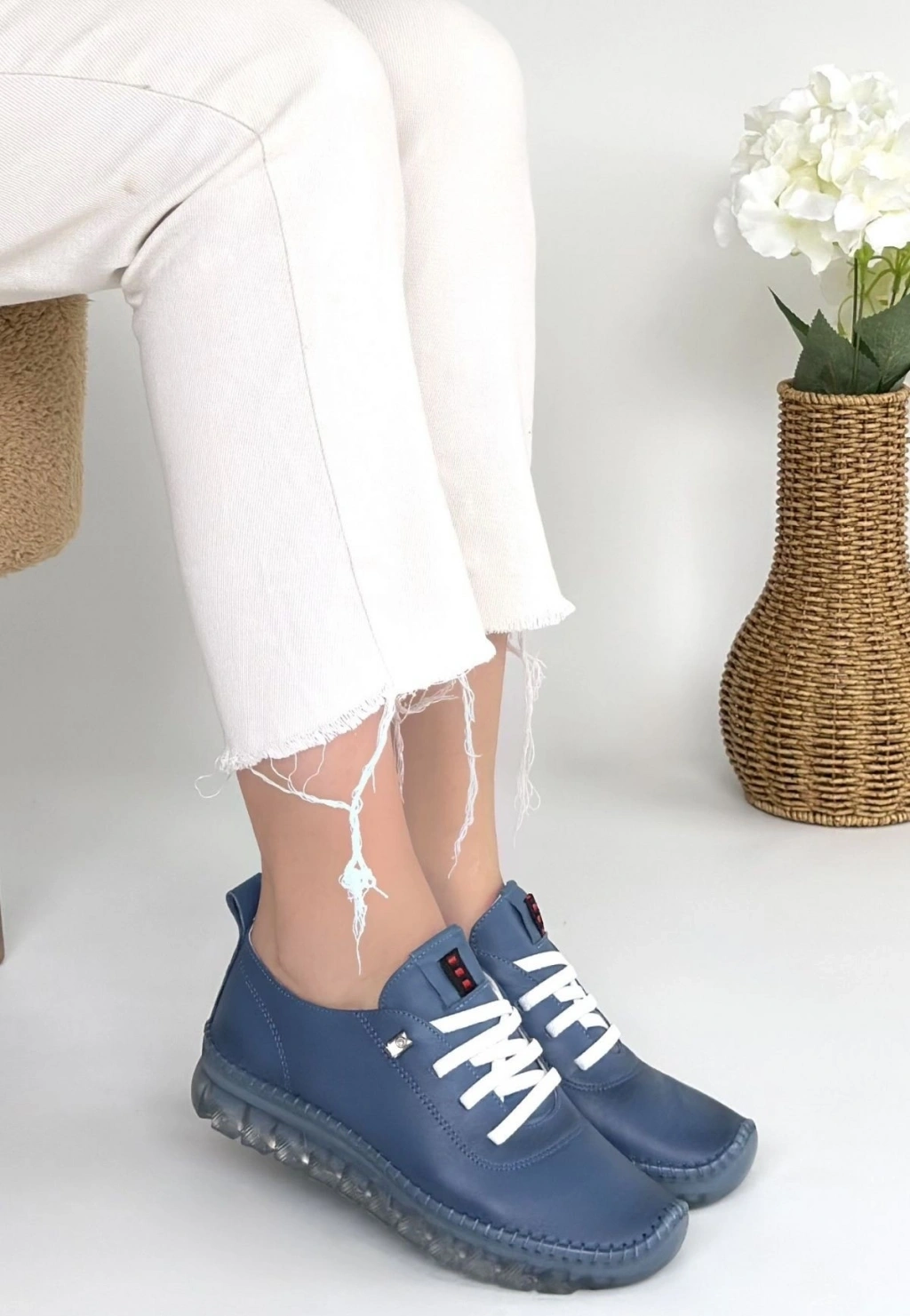 Otja Mavi Deri Lazerli Bağcıklı Spor Ayakkabı