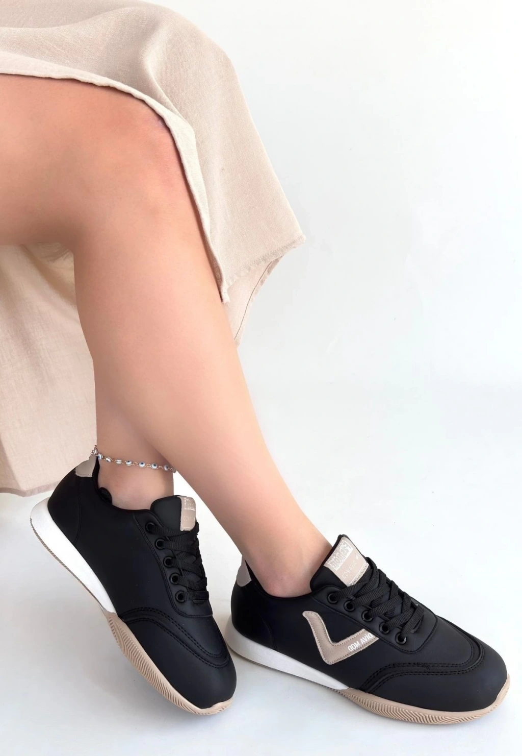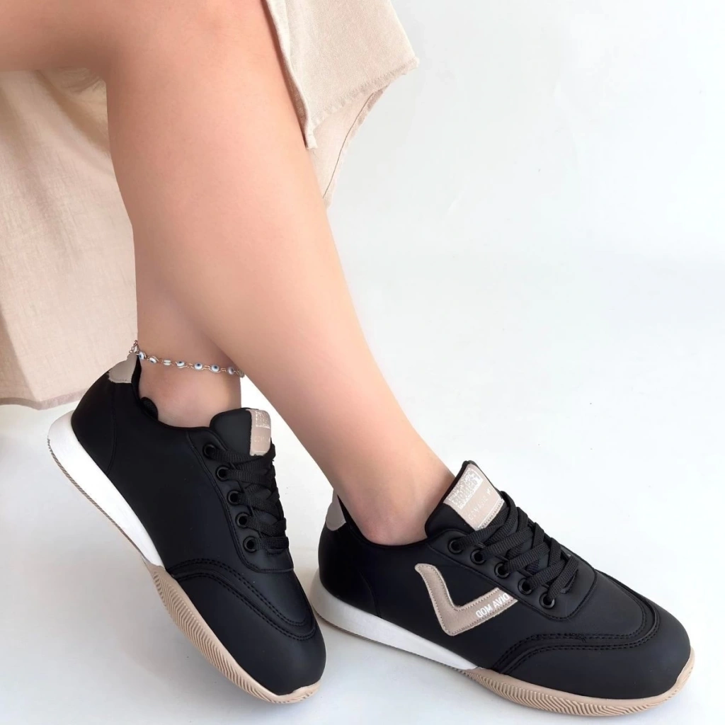 Jowen Siyah Cilt Bej Detaylı Bağcıklı Spor Ayakkabı