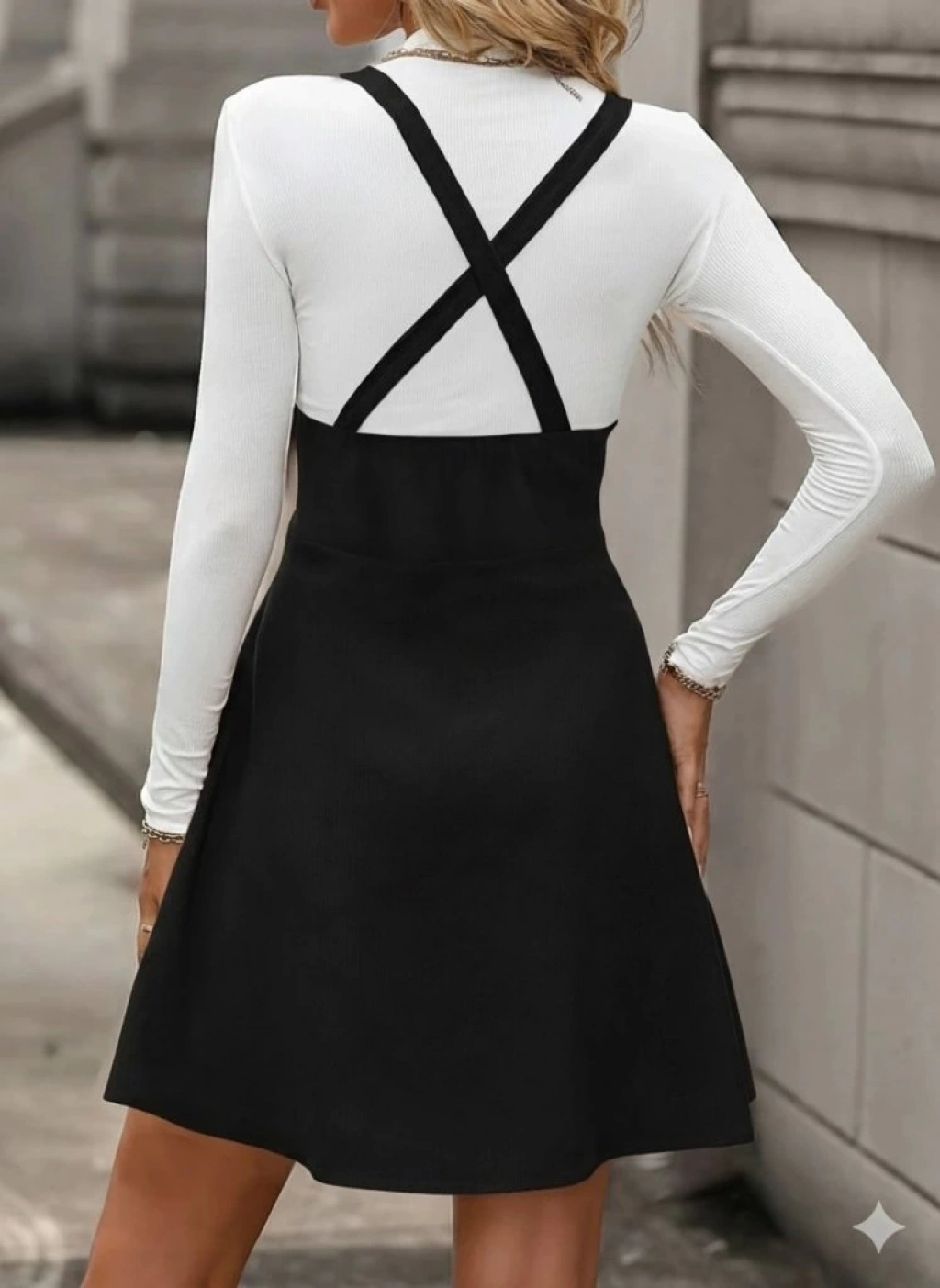 Kadın Askılı Düğmeli Mini Süet Elbise