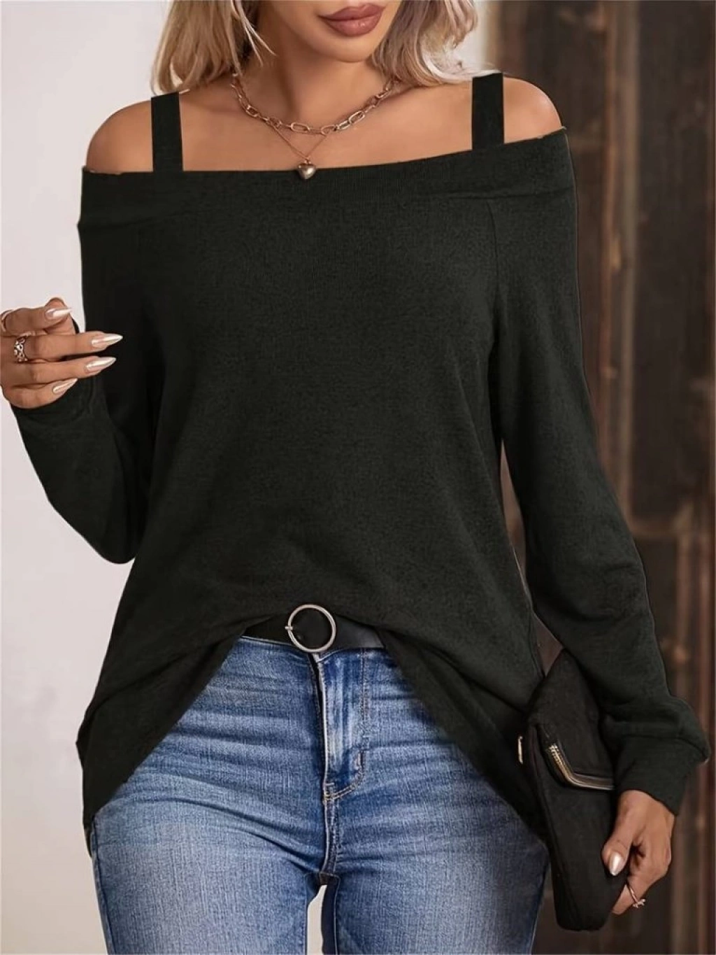 Kadın Askılı Iki Omuzu Açık Salaş Yün Viskon Bluz
