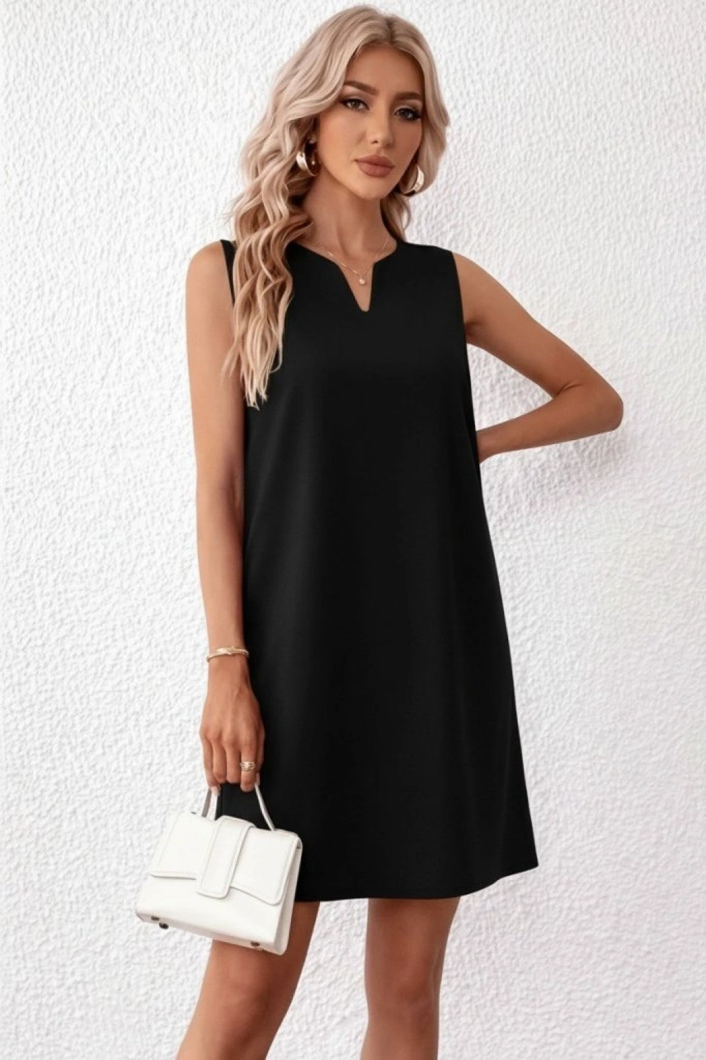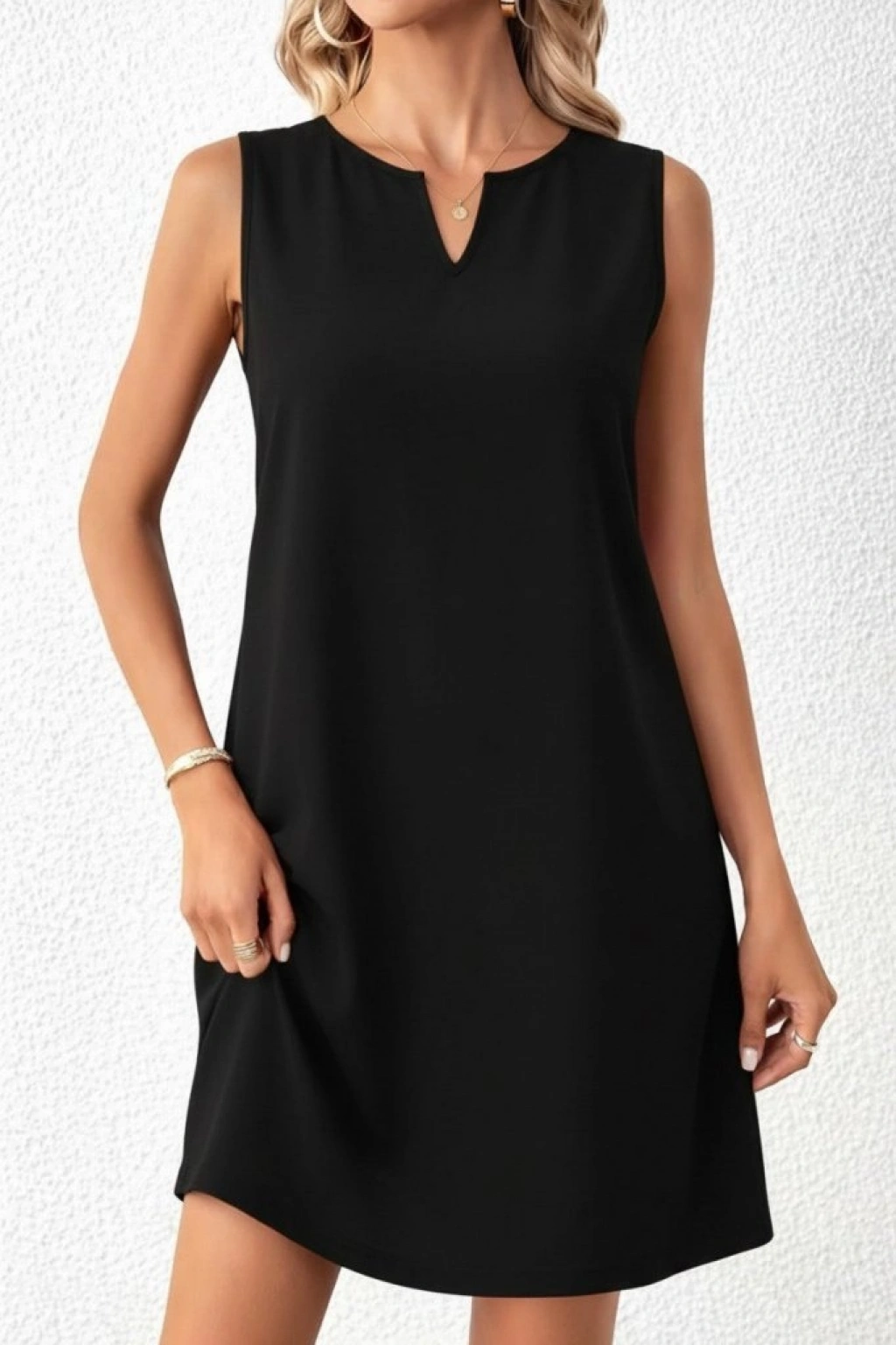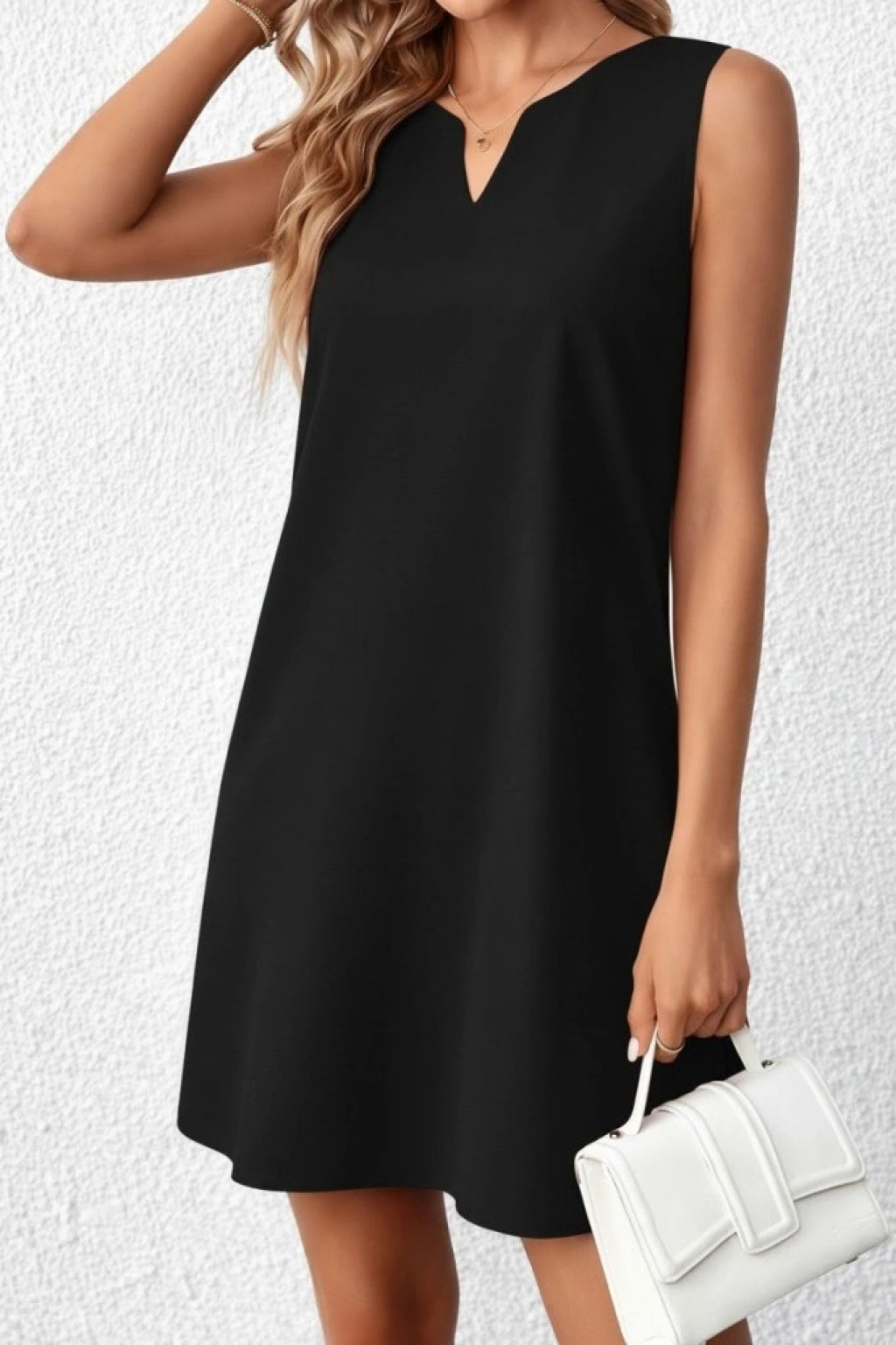 Kadın Askılı V Yakalı Mini Ithal Krep Elbise