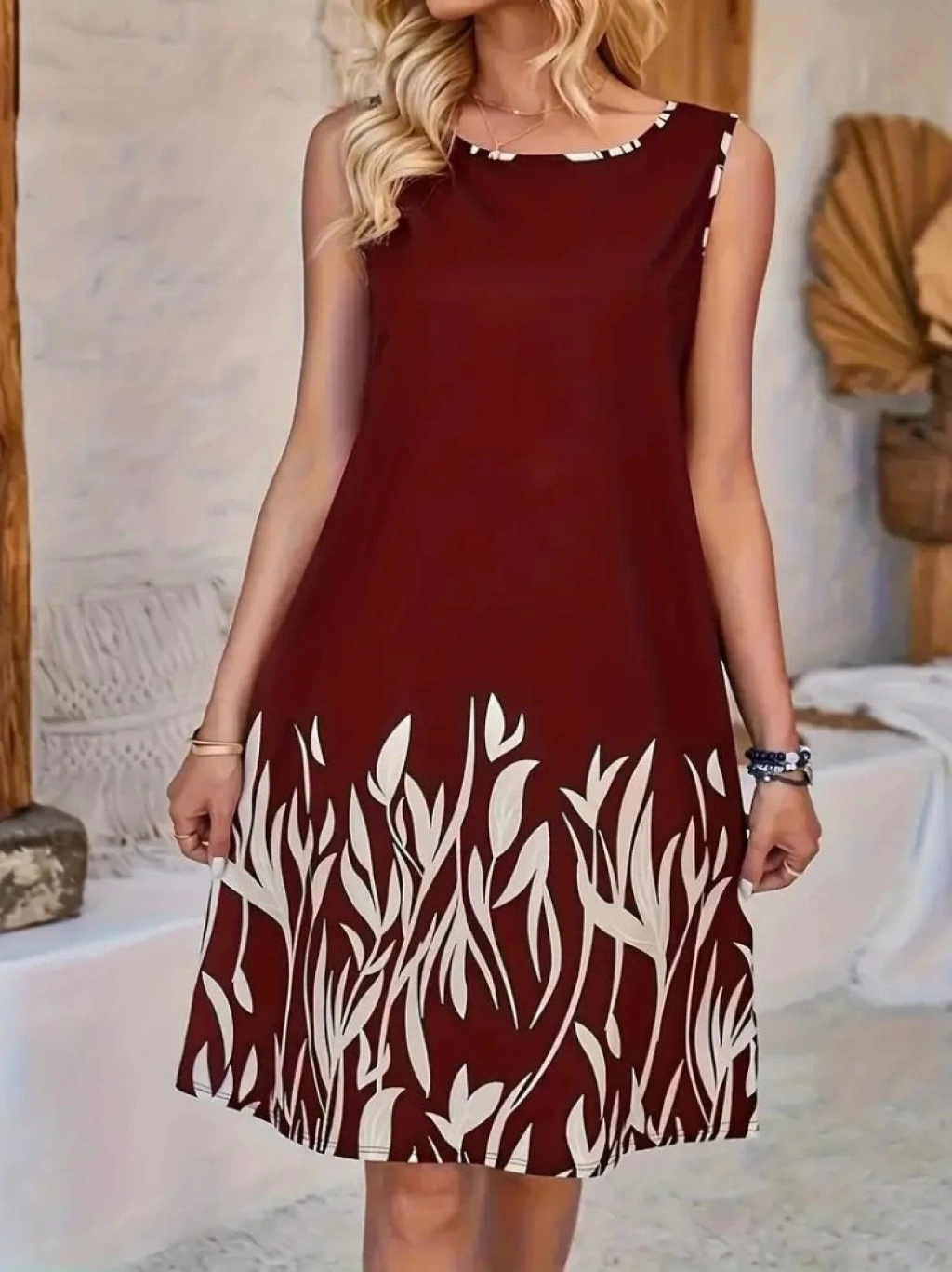 Kadın Askılı Yuvarlak Yakalı Yaprak Desenli Dalgıç Elbise