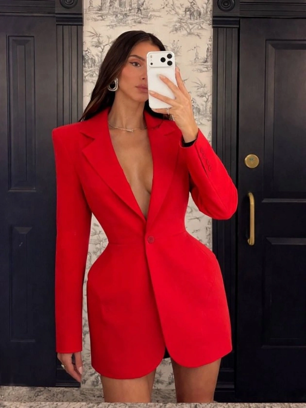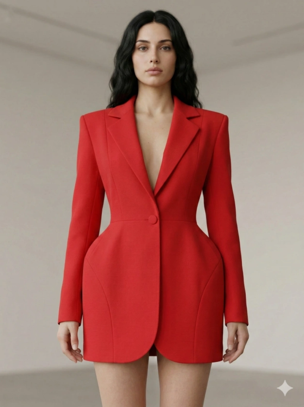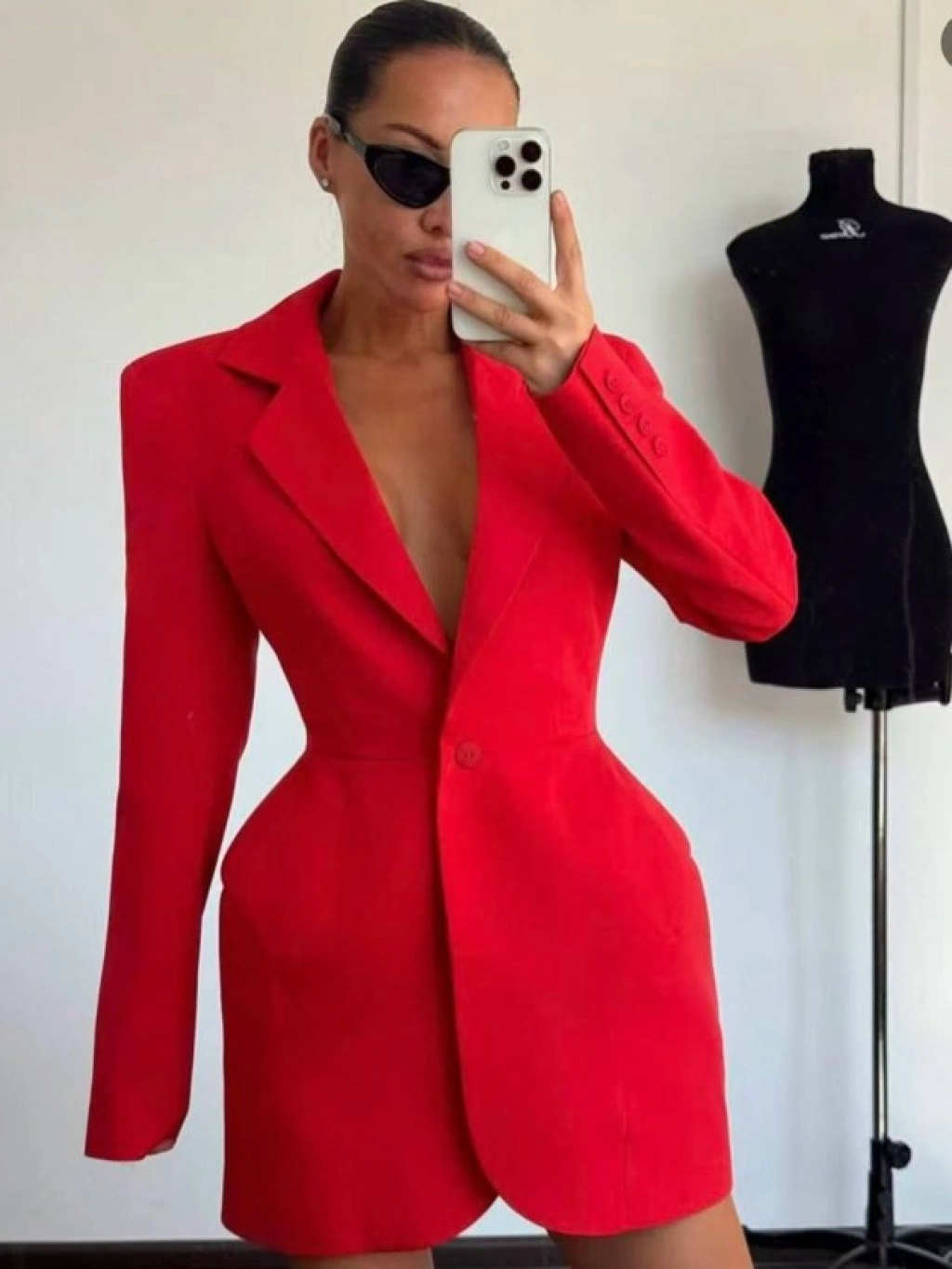 Kadın Atlas-dokuma Kumaş Ceket Elbise