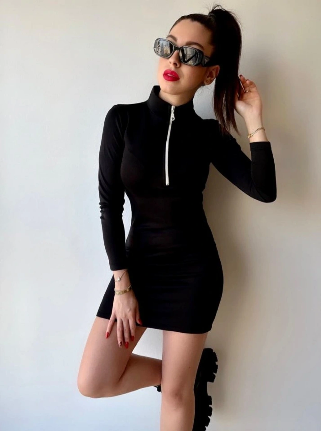Kadın Balıkçı Yaka Fermuar Detay Mini Elbise