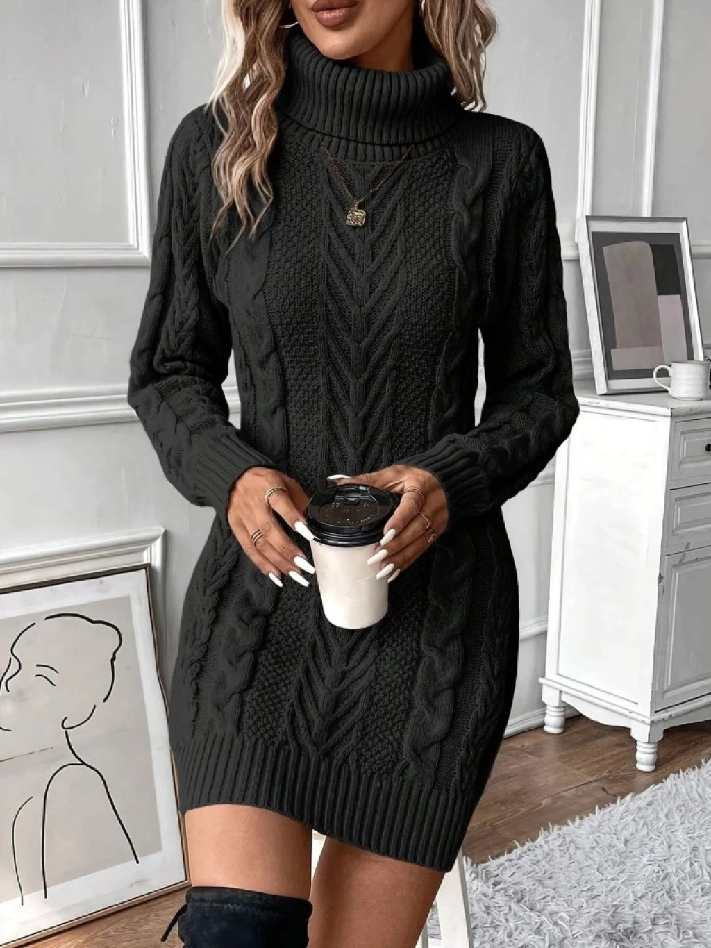 Kadın Balıkçı Yaka Mini Triko Elbise