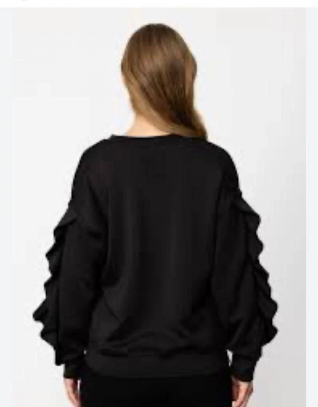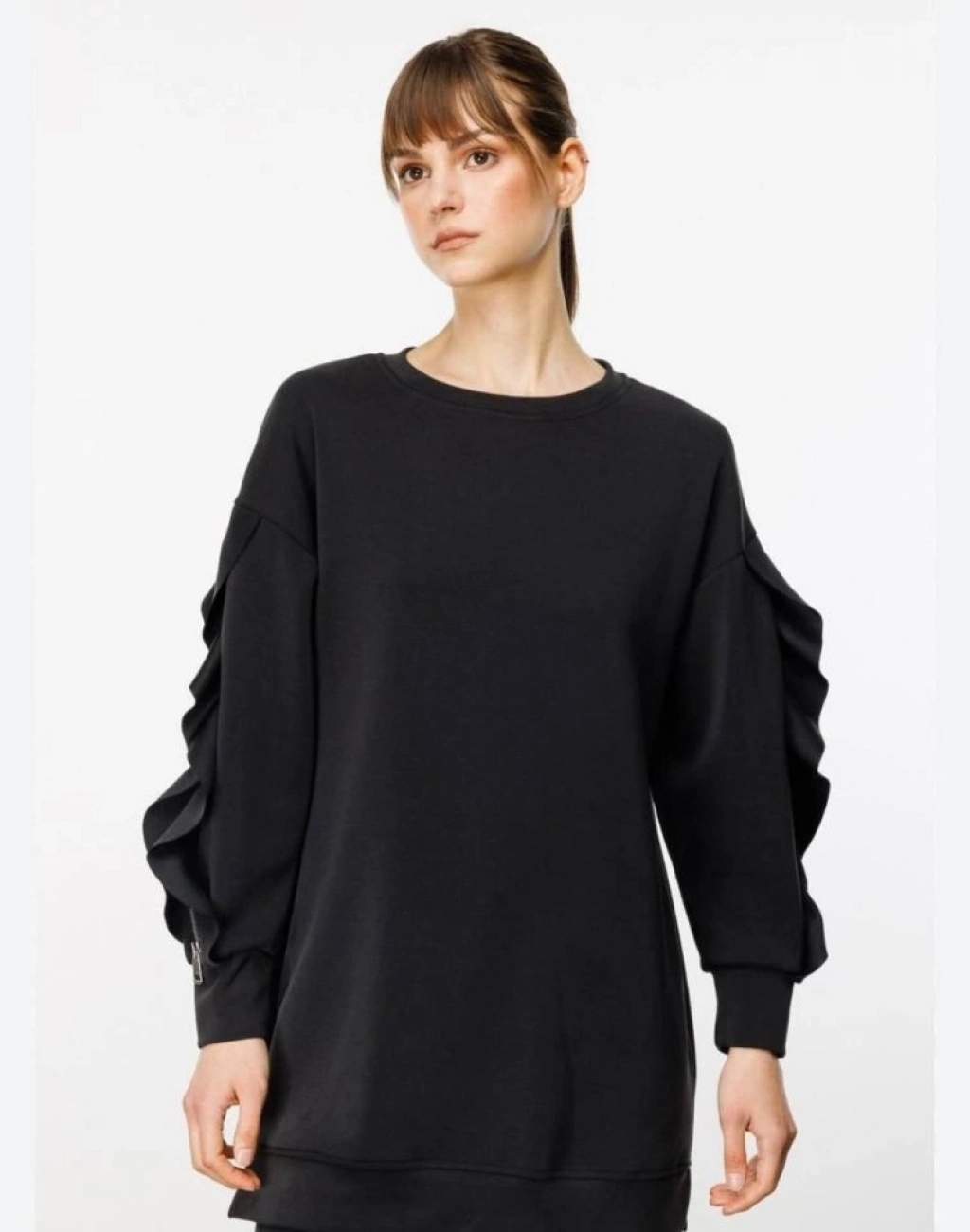 Kadın Bisiklet Yaka Kolları Volan Detay üç Iplik Kumaş Sweat