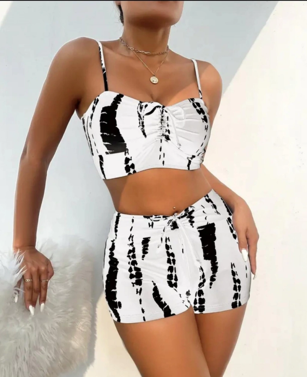 Kadın Büzgü Detay Askılı Crop Mini Tayt Ikili Takım