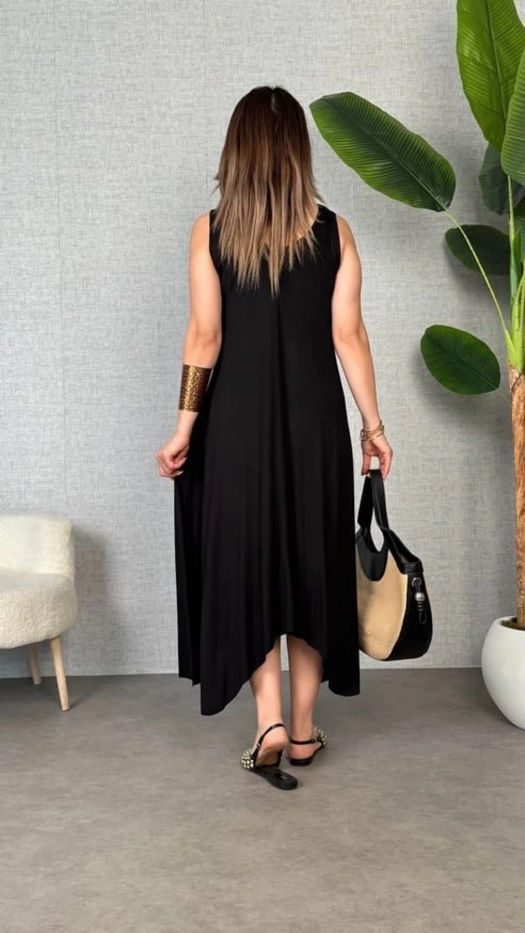 Kadın çan Dokuma Kumaş V Yaka Asimetrik Kesim Elbise