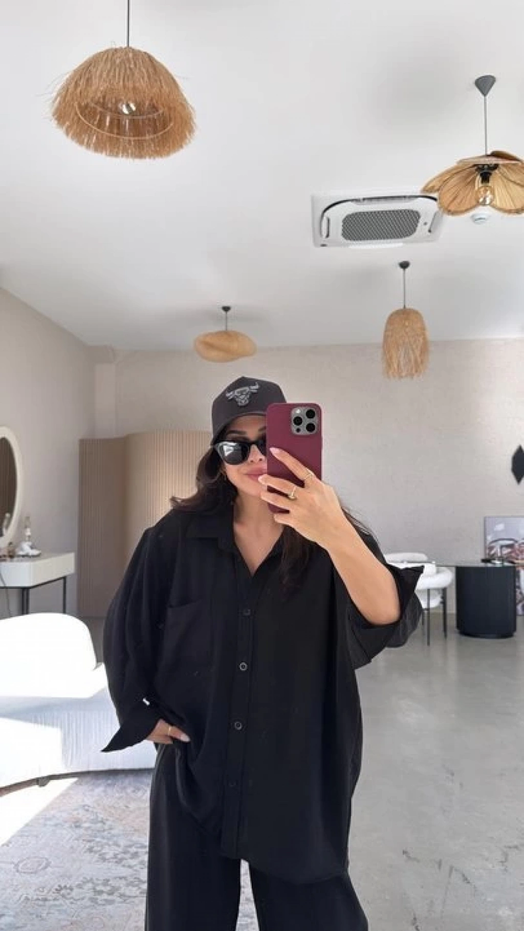 Kadın Flamlı Keten Tek Cep Oversızed Gömlek