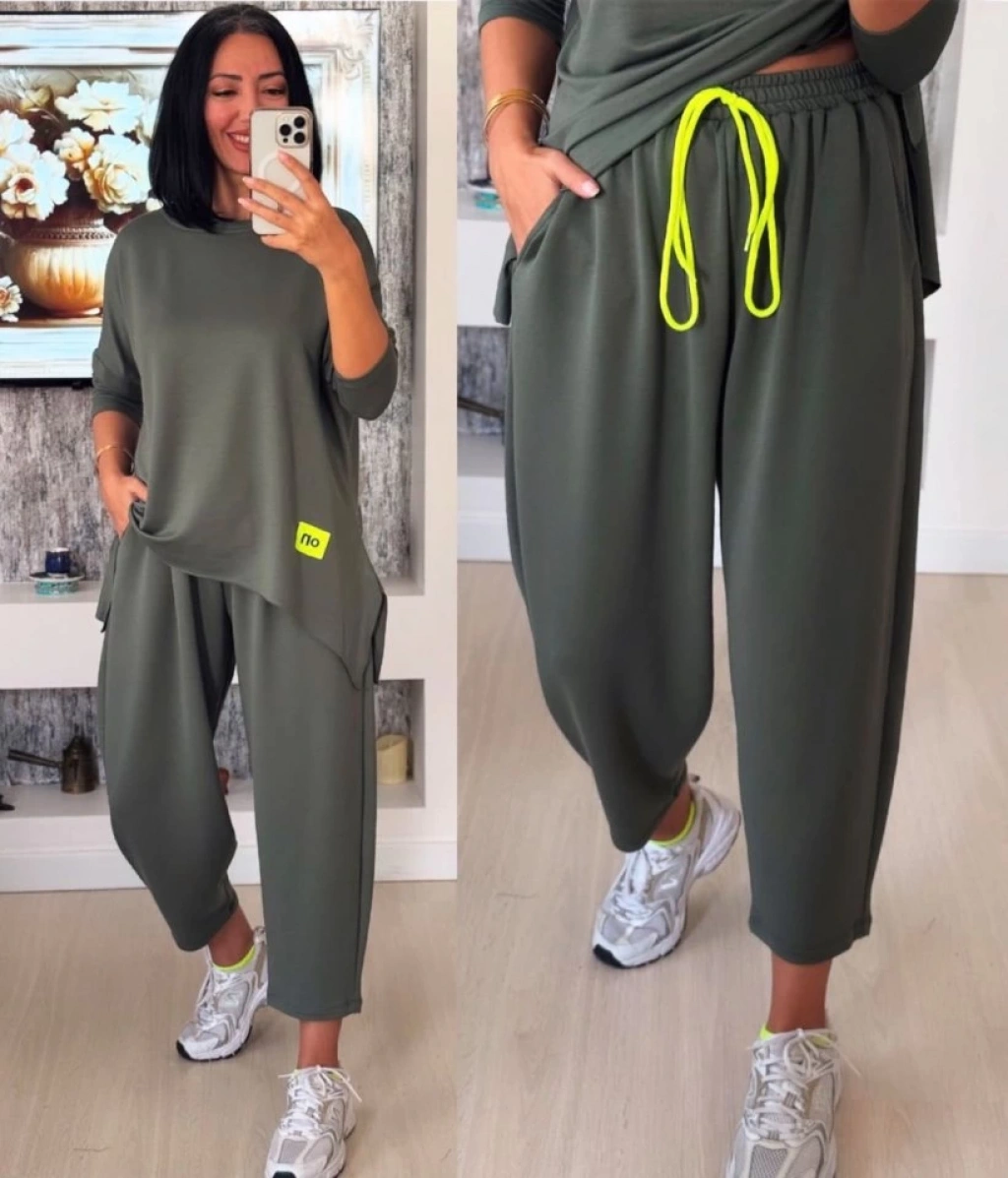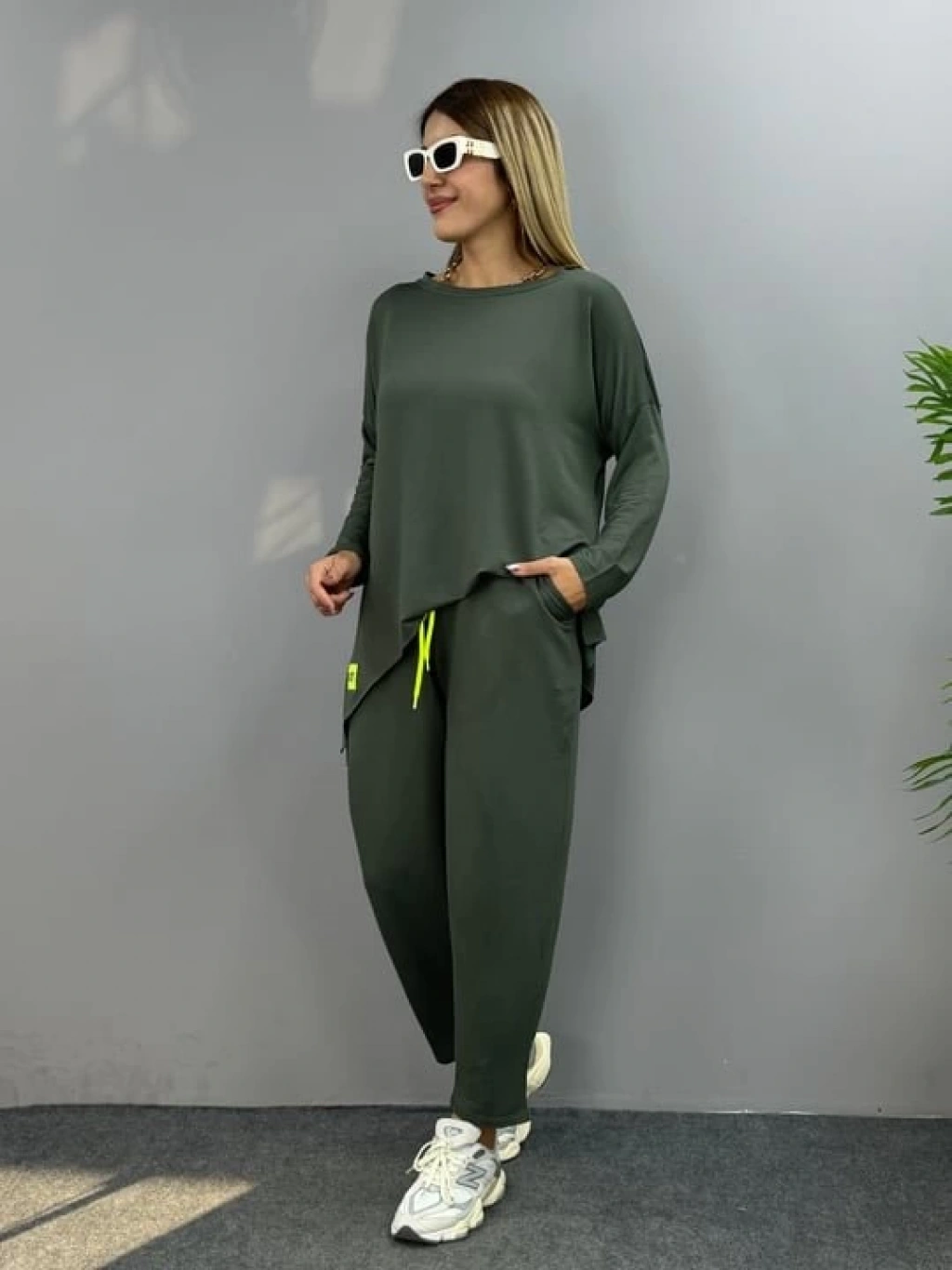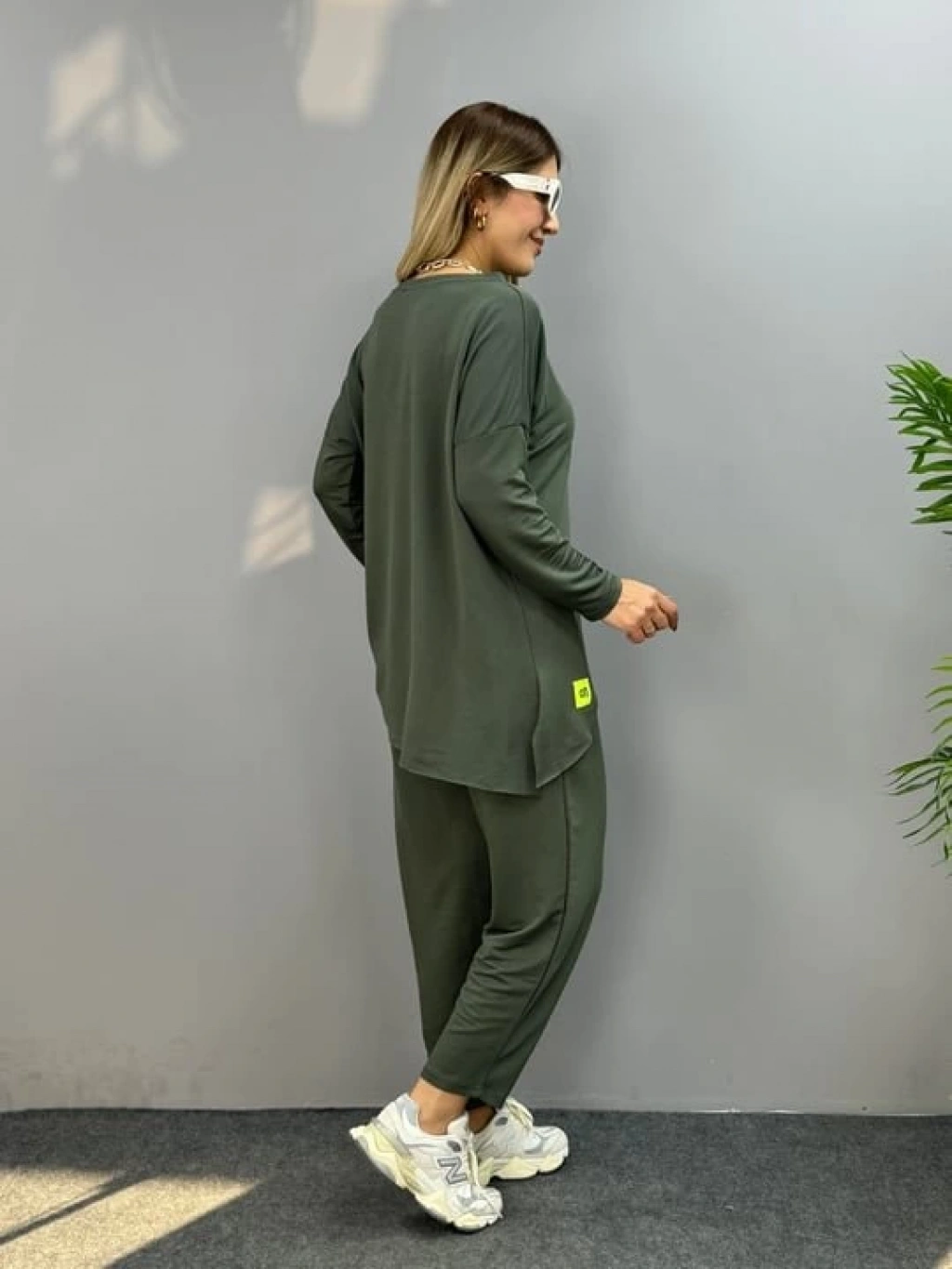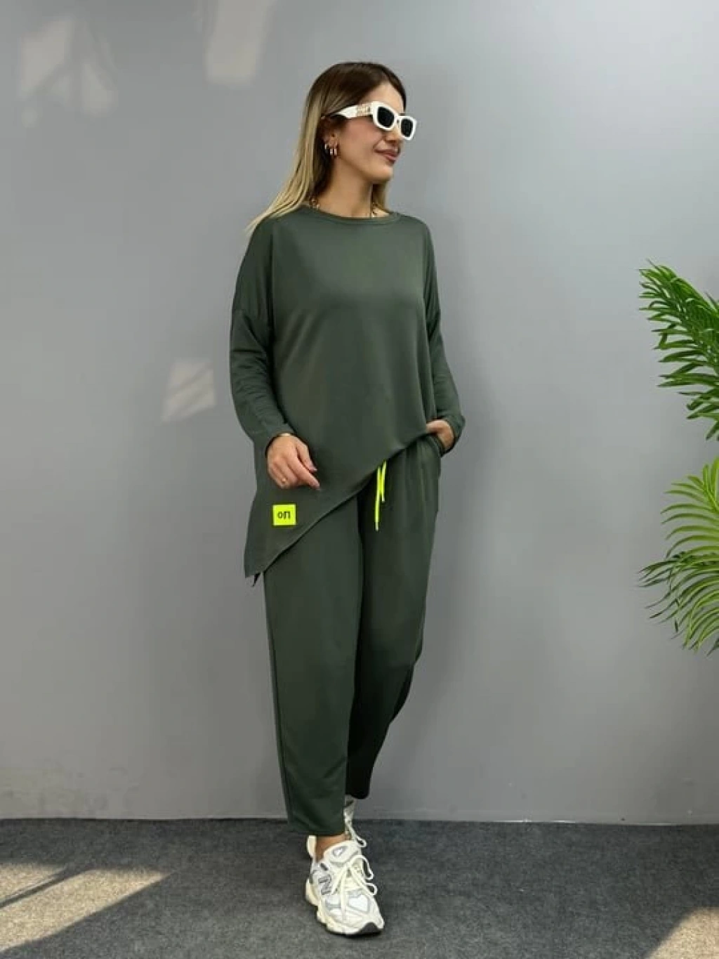 Kadın Iki Iplik Viskon Pamuk Kumaş Arma Detaylı Ikili Takım