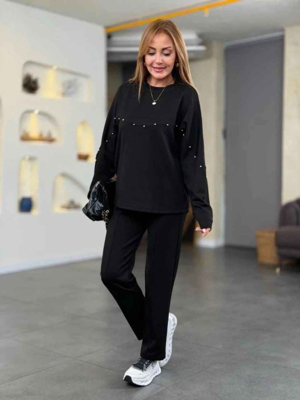 Kadın Inci Detay Modal Kumaş Ikili Takım