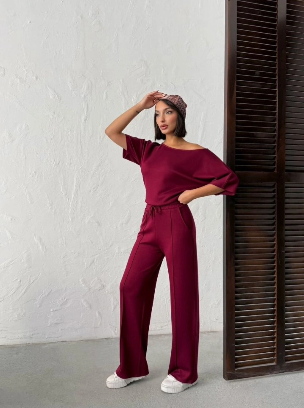 Kadın İsa Kollu Kayık Yaka Bluz Ve Pantolon Misal Kumaş Ikili Takım