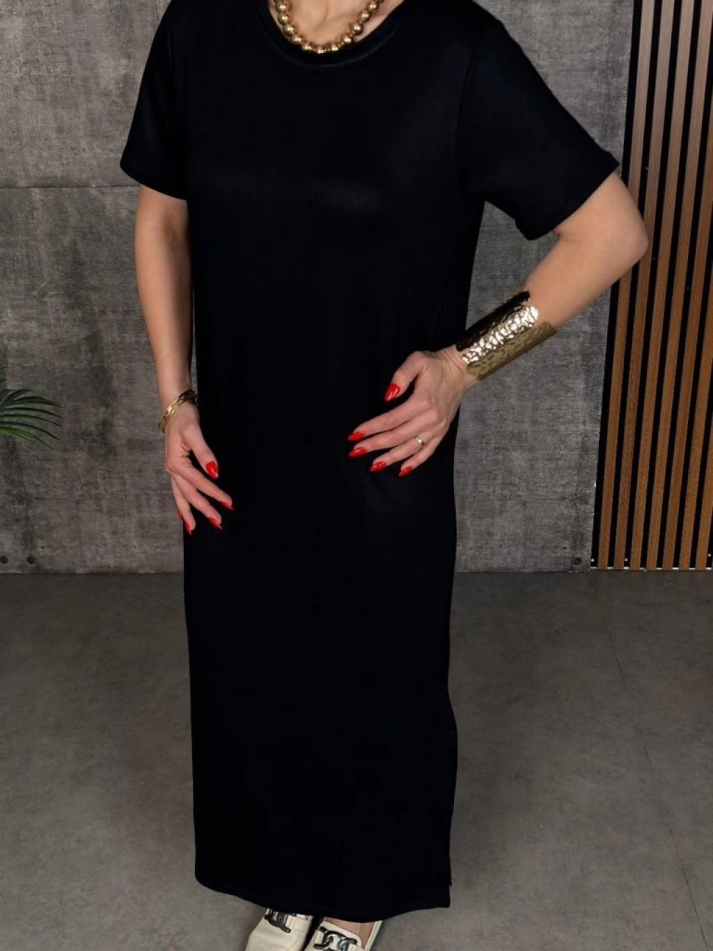 Kadın Kısa Kollu Bisiklet Yaka Yırtmaçlı Viskon Iki Iplik Elbise