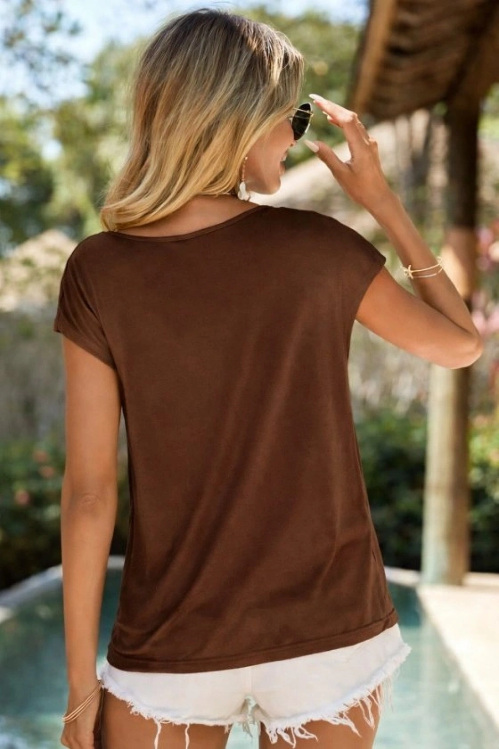 Kadın Kısa Kollu Degaje Yakalı Viskon Bluz