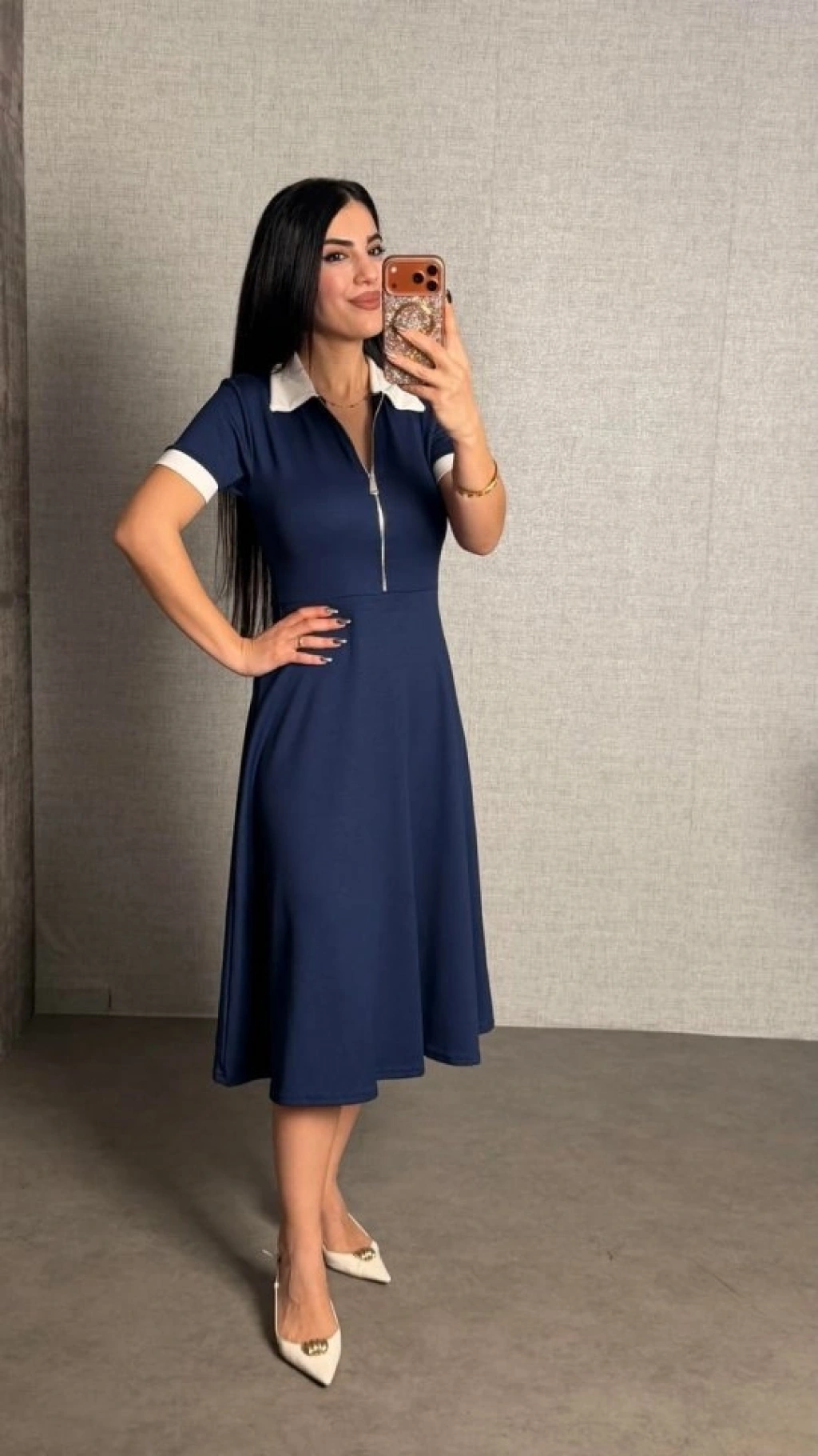 Kadın Kısa Kollu Ribana Ve Fermuar Detay Midi Boy Elbise