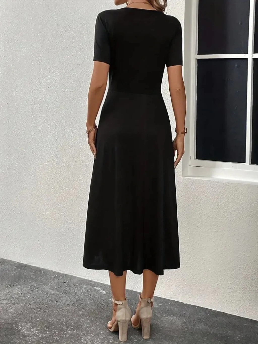Kadın Kısa Kollu V Yakalı önden Düğmeli Yırtmaçlı Midi Viskon Elbise