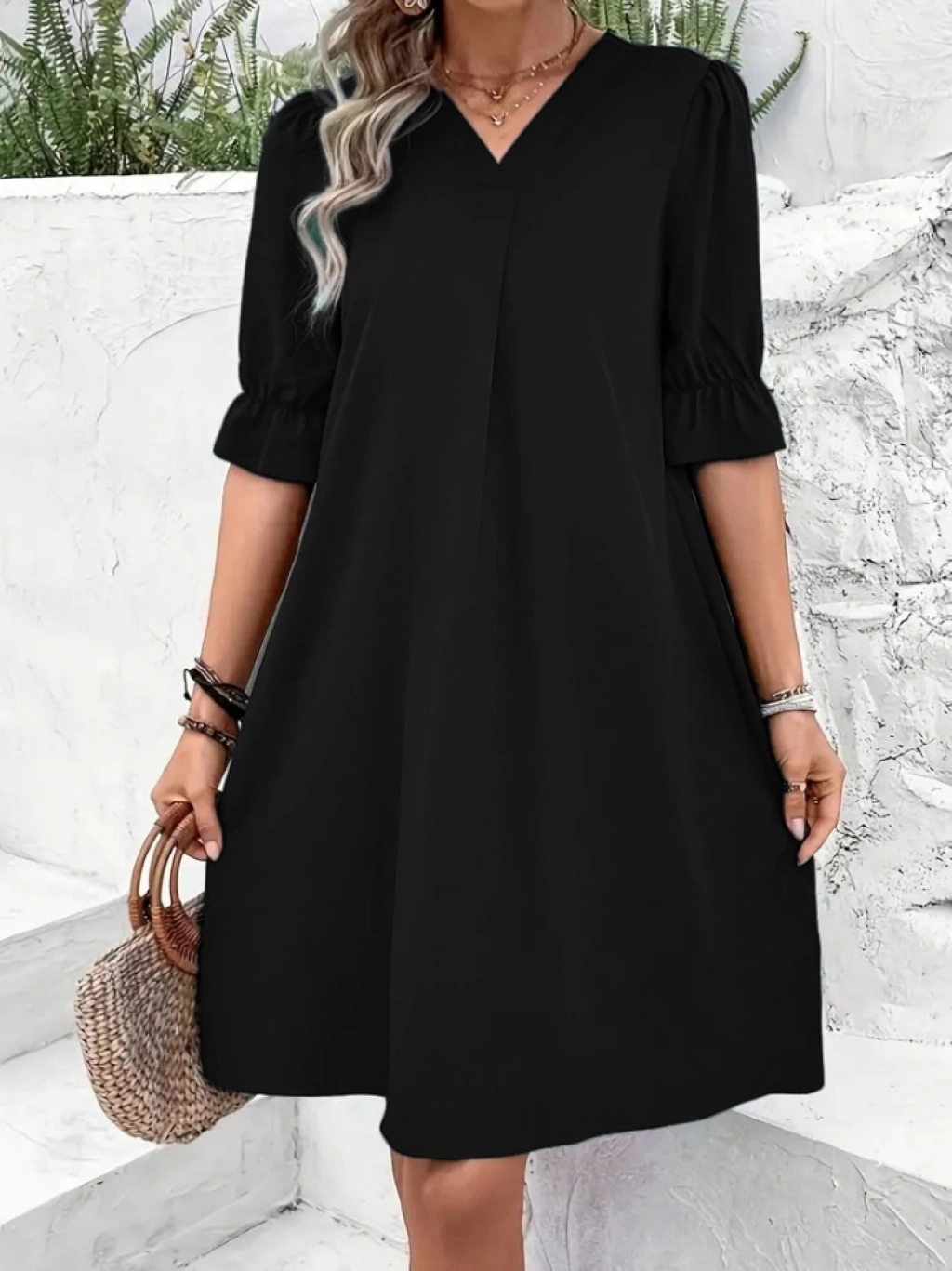 Kadın Kısa Kollu V Yakalı Salaş Janjan Krep Elbise