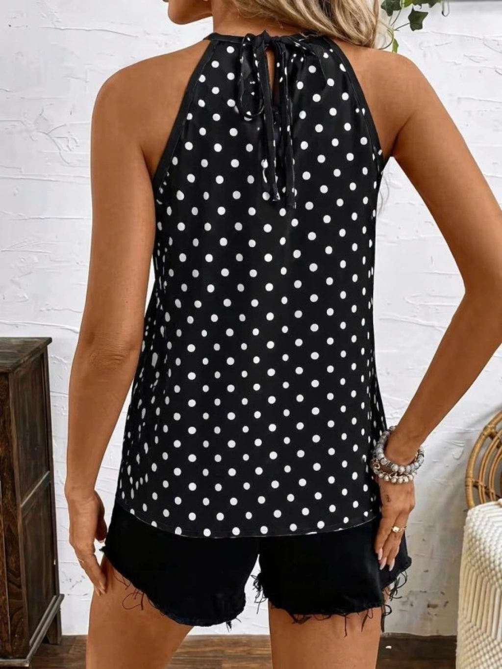 Kadın Kolsuz Boyundan Hakla Detaylı Leopar Süprem Bluz