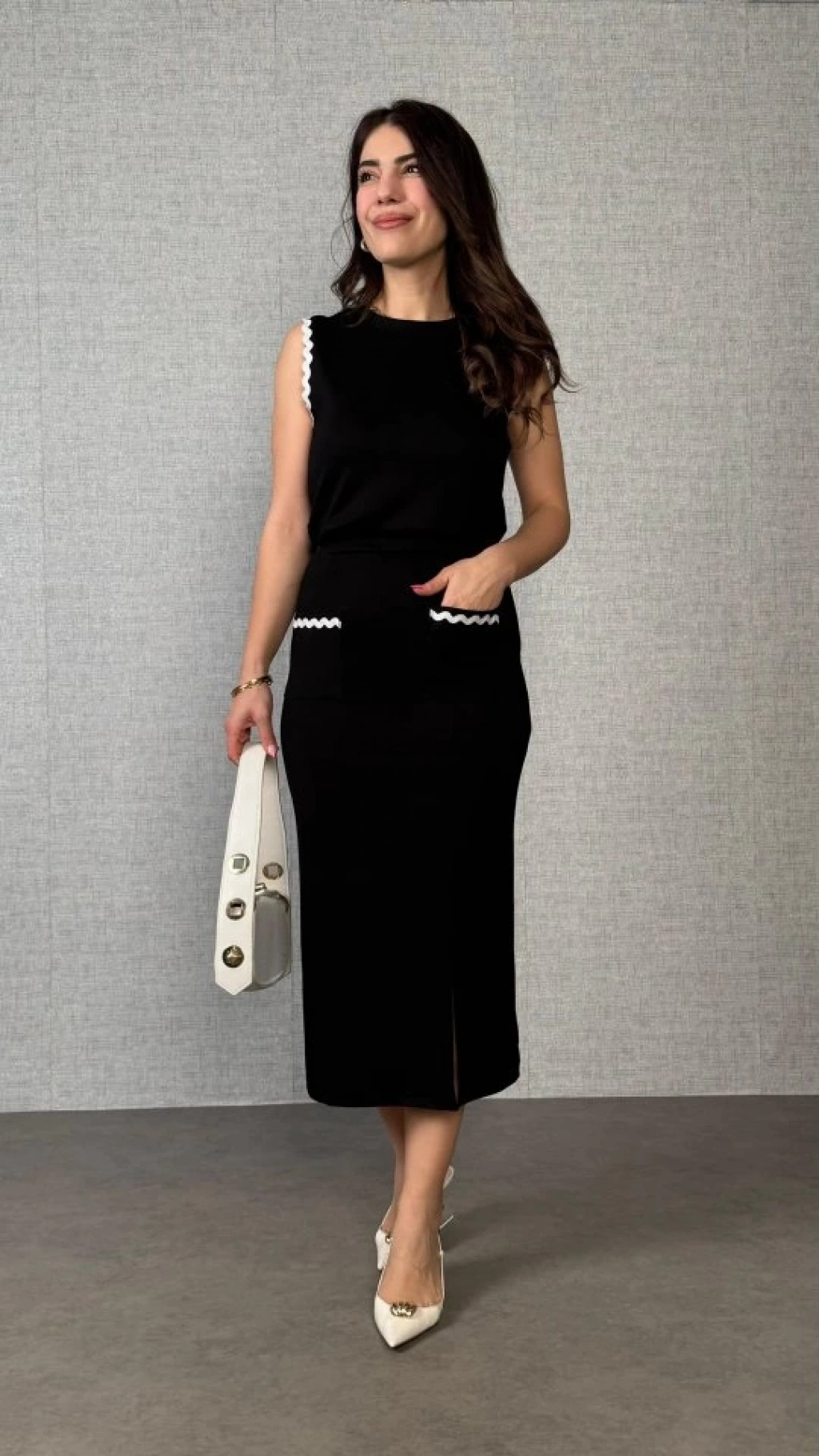 Kadın Modal Kumaş Cepli Yırtmaç Detay Etekli Ikili Takım
