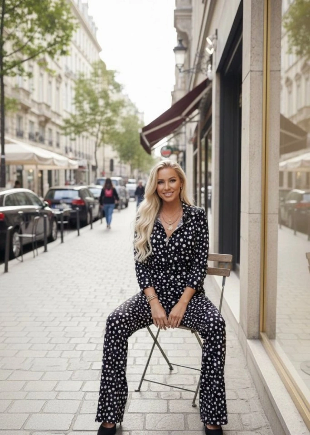 Kadın Puantiye Detay Kadife Kumaş Hırka Pantolon Ikili Takım
