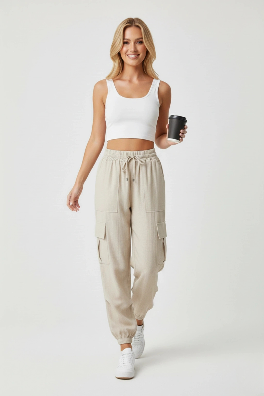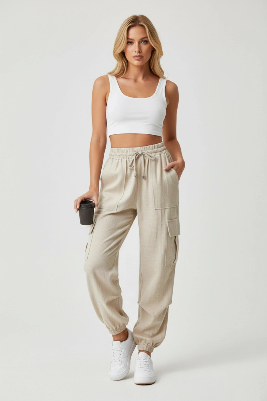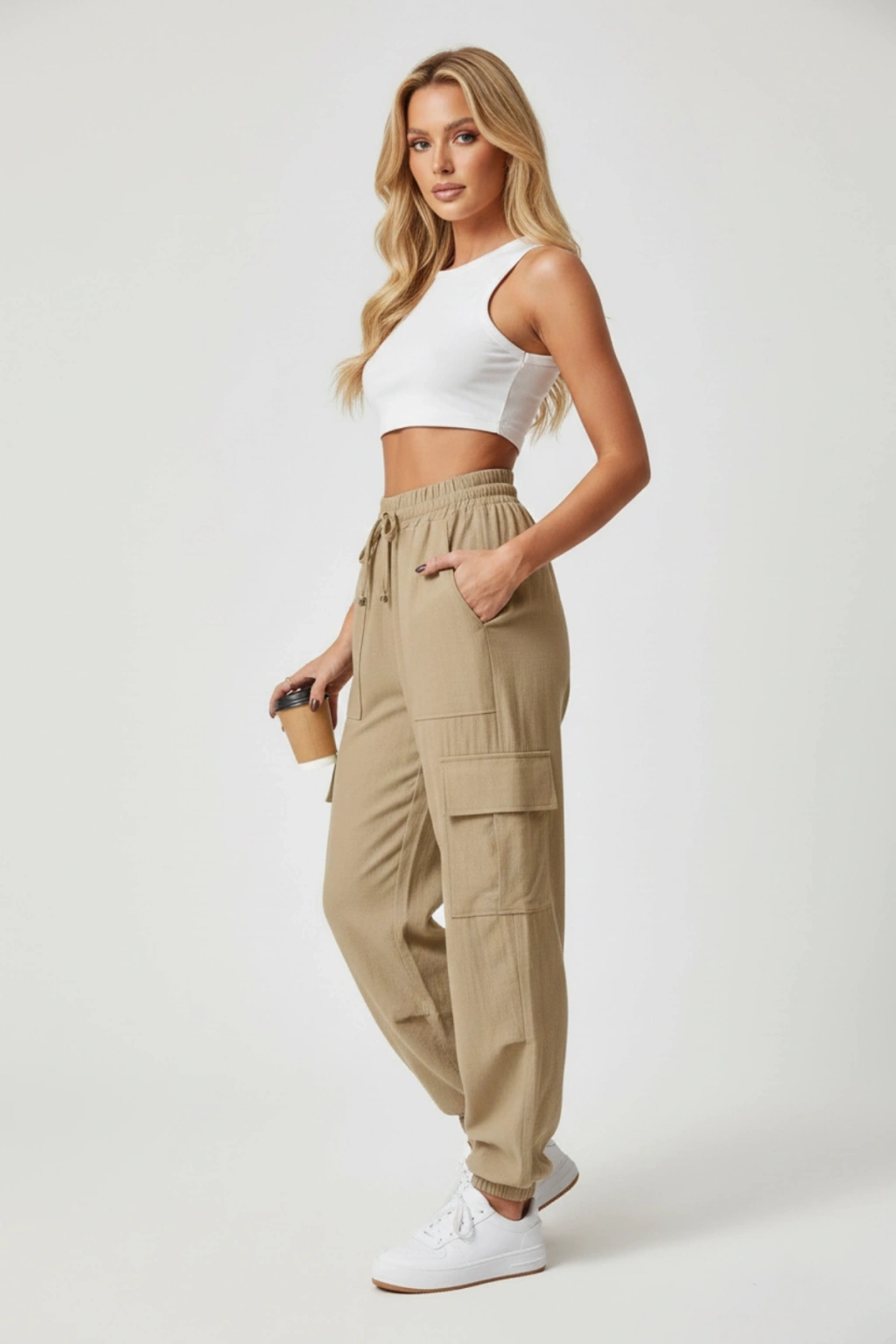 Erkek Keten Cepli Çıma Dikişli Jogger Buggy Pantalon Rahat Kalıp - Kahverengi