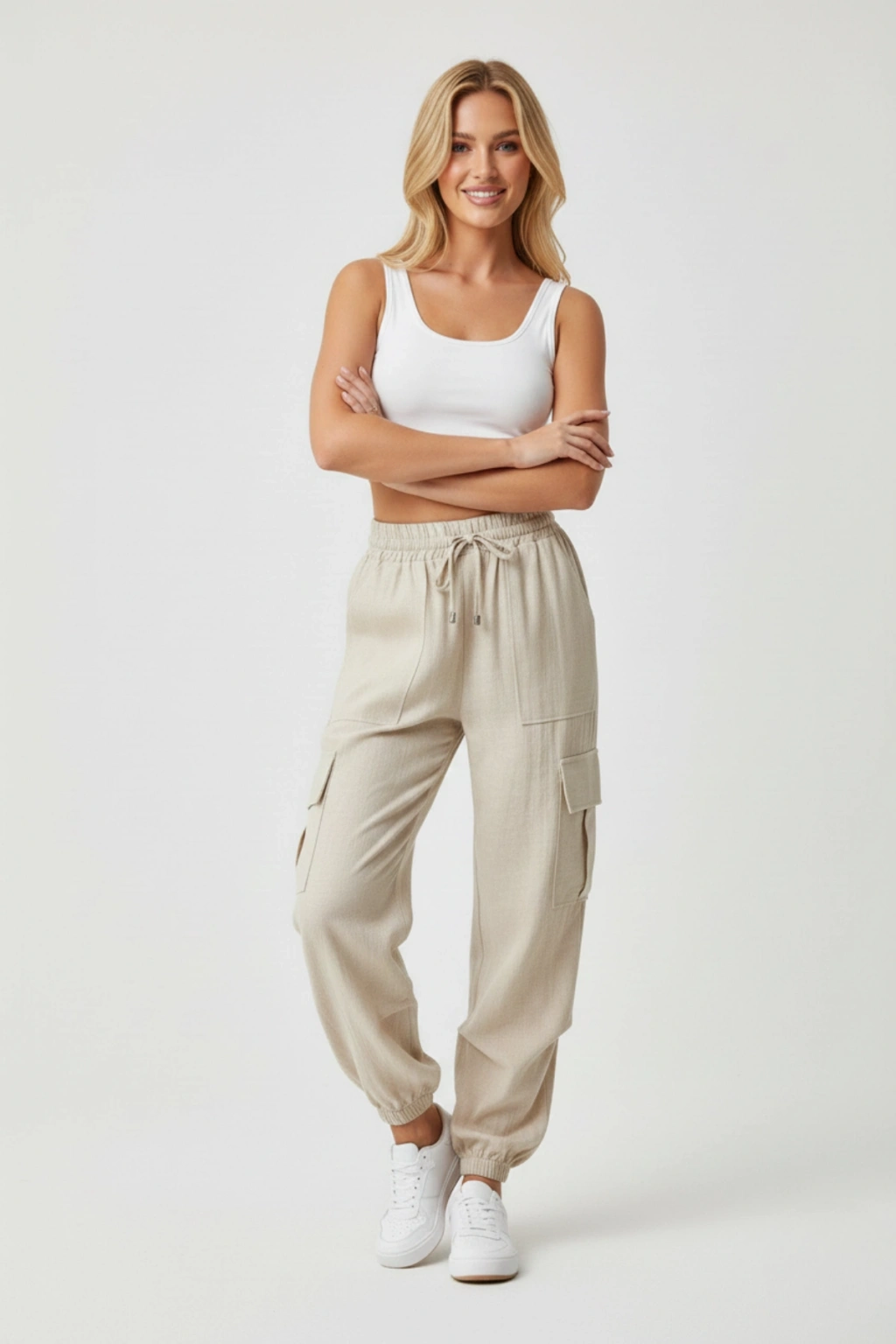 %100 Pamuk Müslin Cepli Palazzo Pantolon
