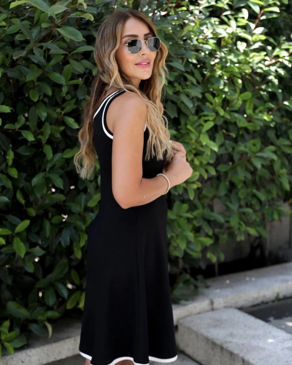 Kadın Sıfır Kollu Yaka Ve Etek Ucu Ribana Detaylıkiloş Viskon Iki Iplik Elbise