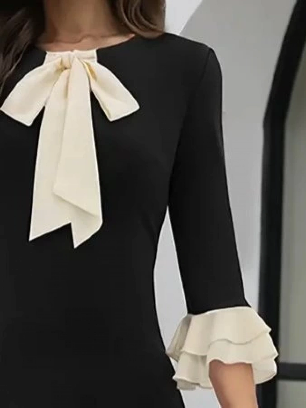 Kadın Truvakar Kollu Fiyonk Yakalı Midi Ithal Krep Elbise