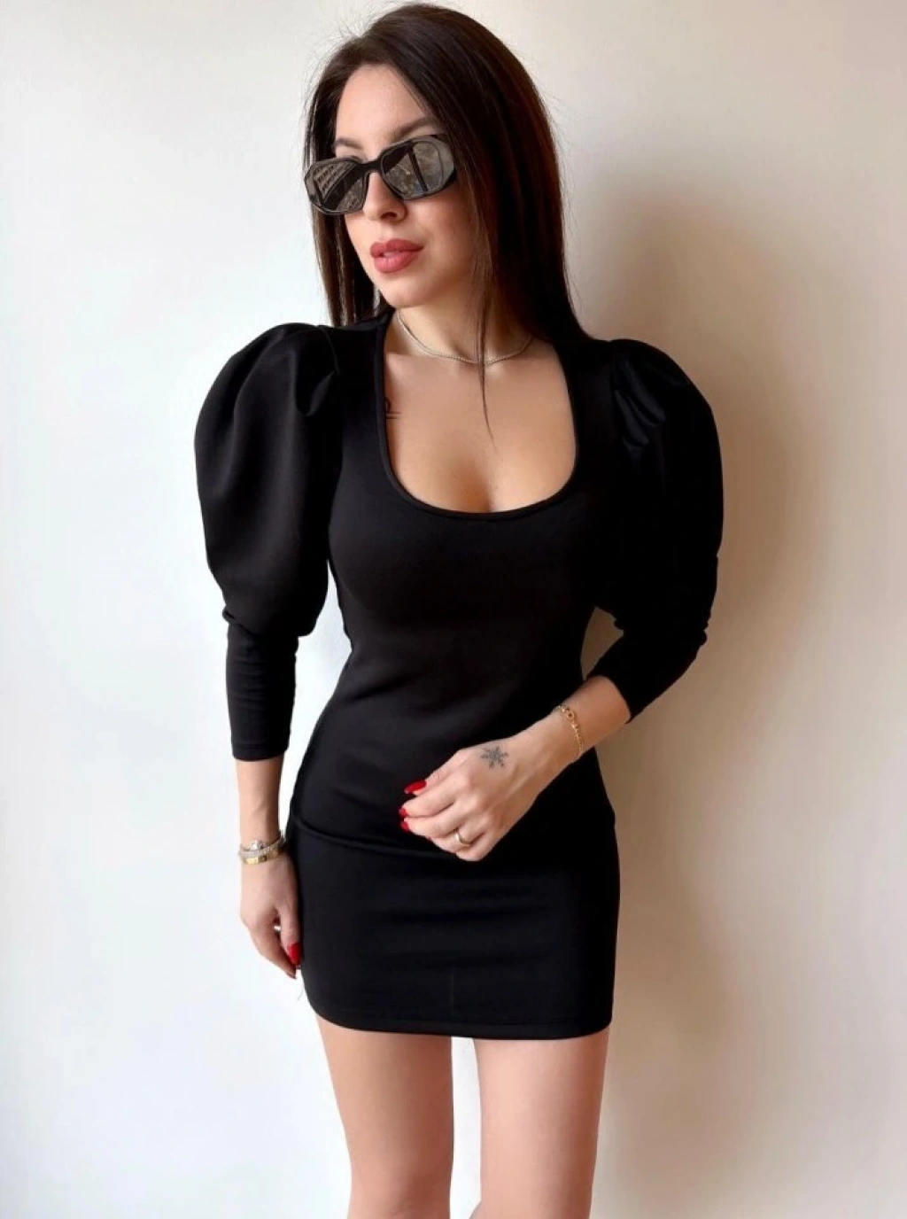 Kadın U Yaka Balon Omuz Ve Fakir Kol Detay Mini Elbise