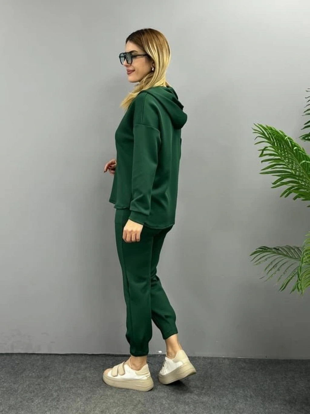 Kadın Uzun Kol V Yaka Kapüşon Detay Sweat Ve Yüksel Bel Eşofman Ikili Takım