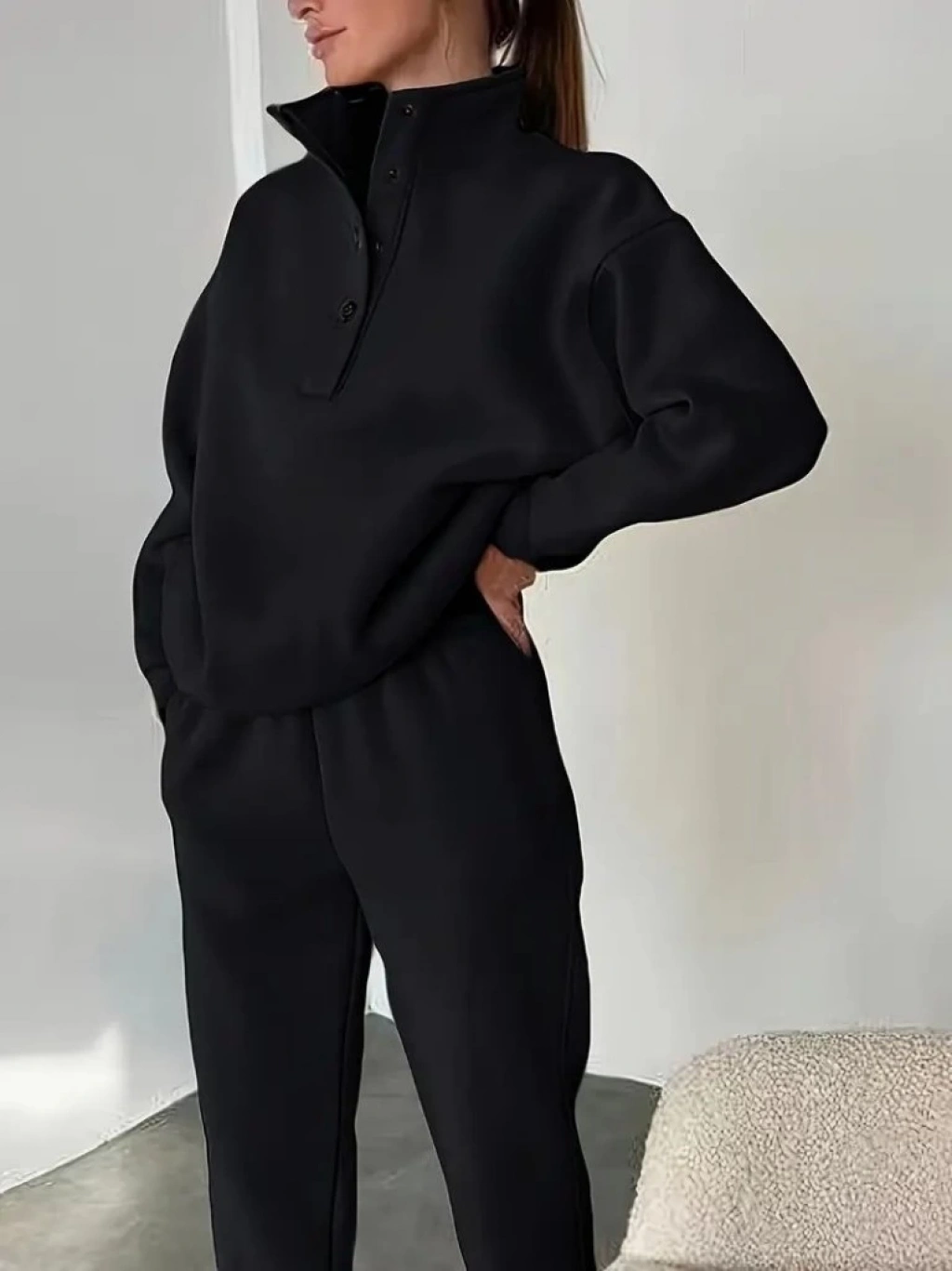 Kadın Uzun Kollu Balıkçı Dik Yakalı Düğmeli üç Iplik Bluz Ve Pantolon Ikili Takım
