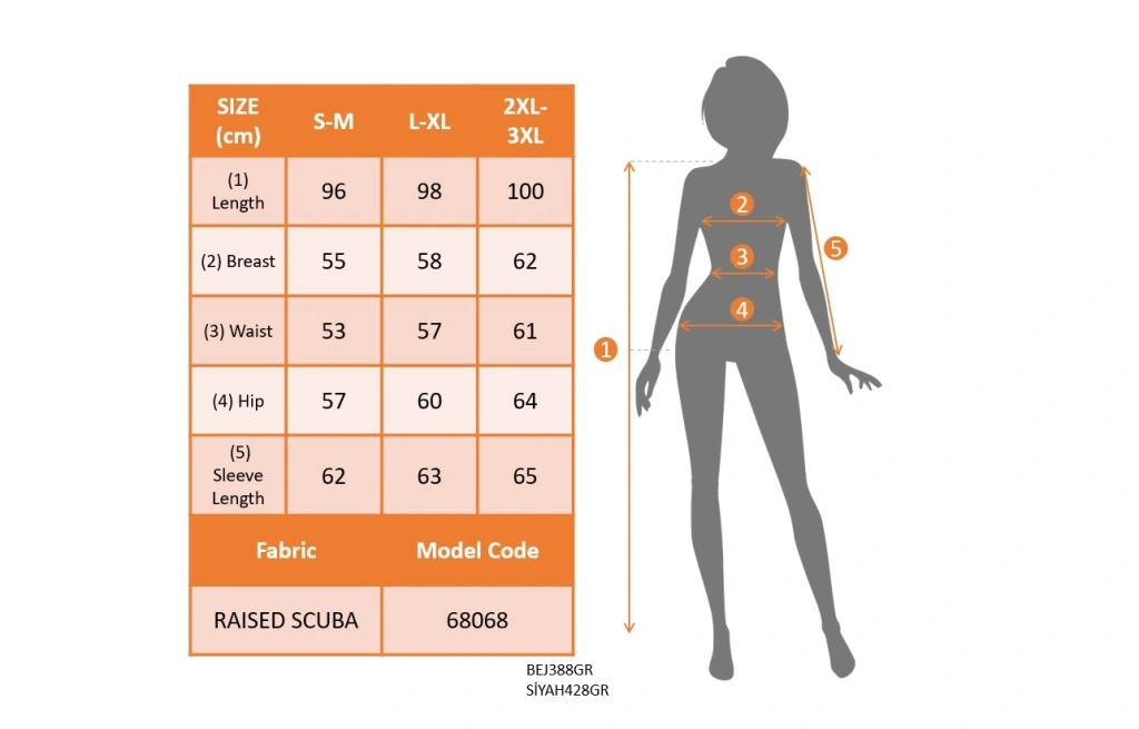 Modelin Ölçüleri: Boy:165, Kg:55, Göğüs:90, Bel:72, Kalça: 100
