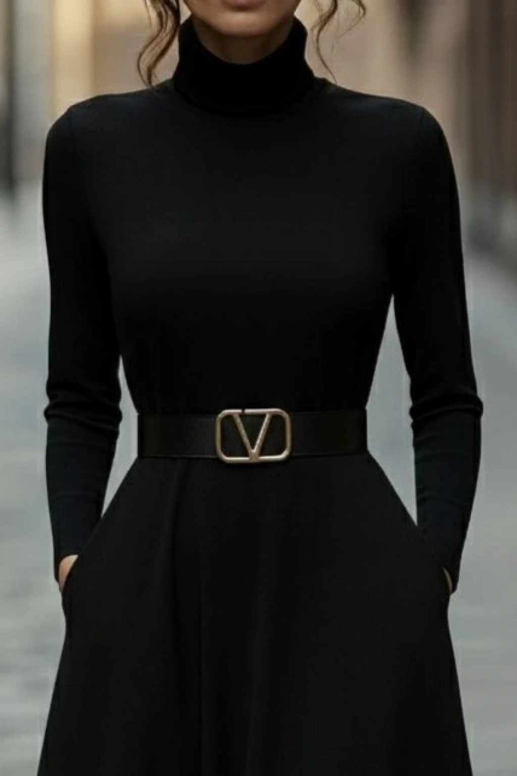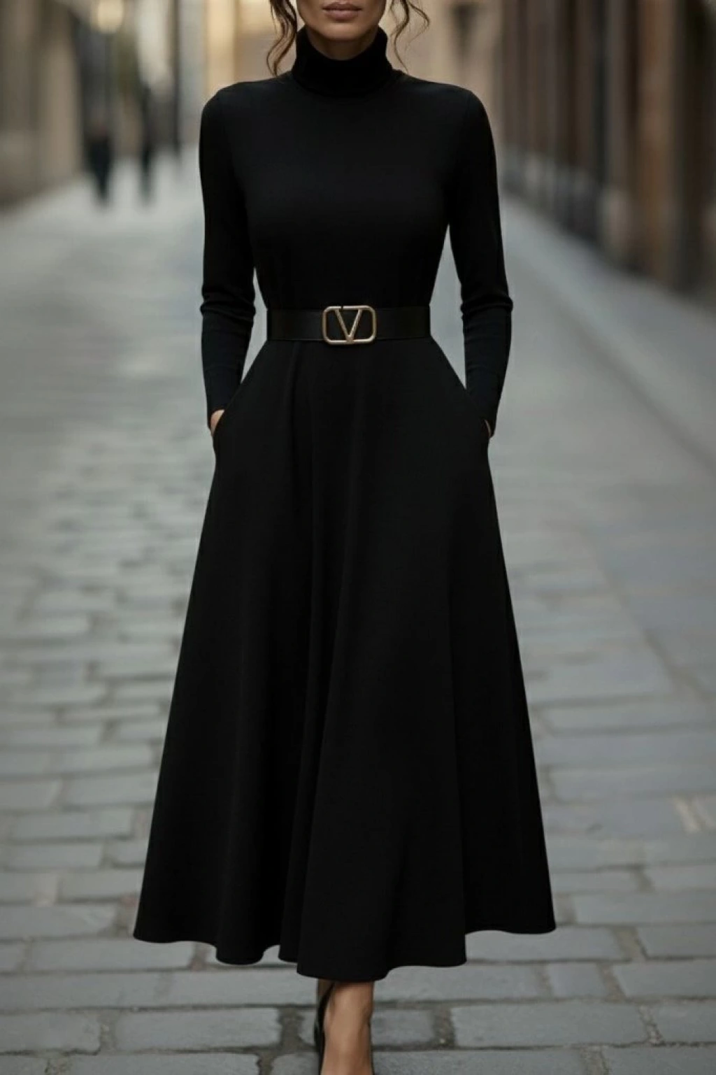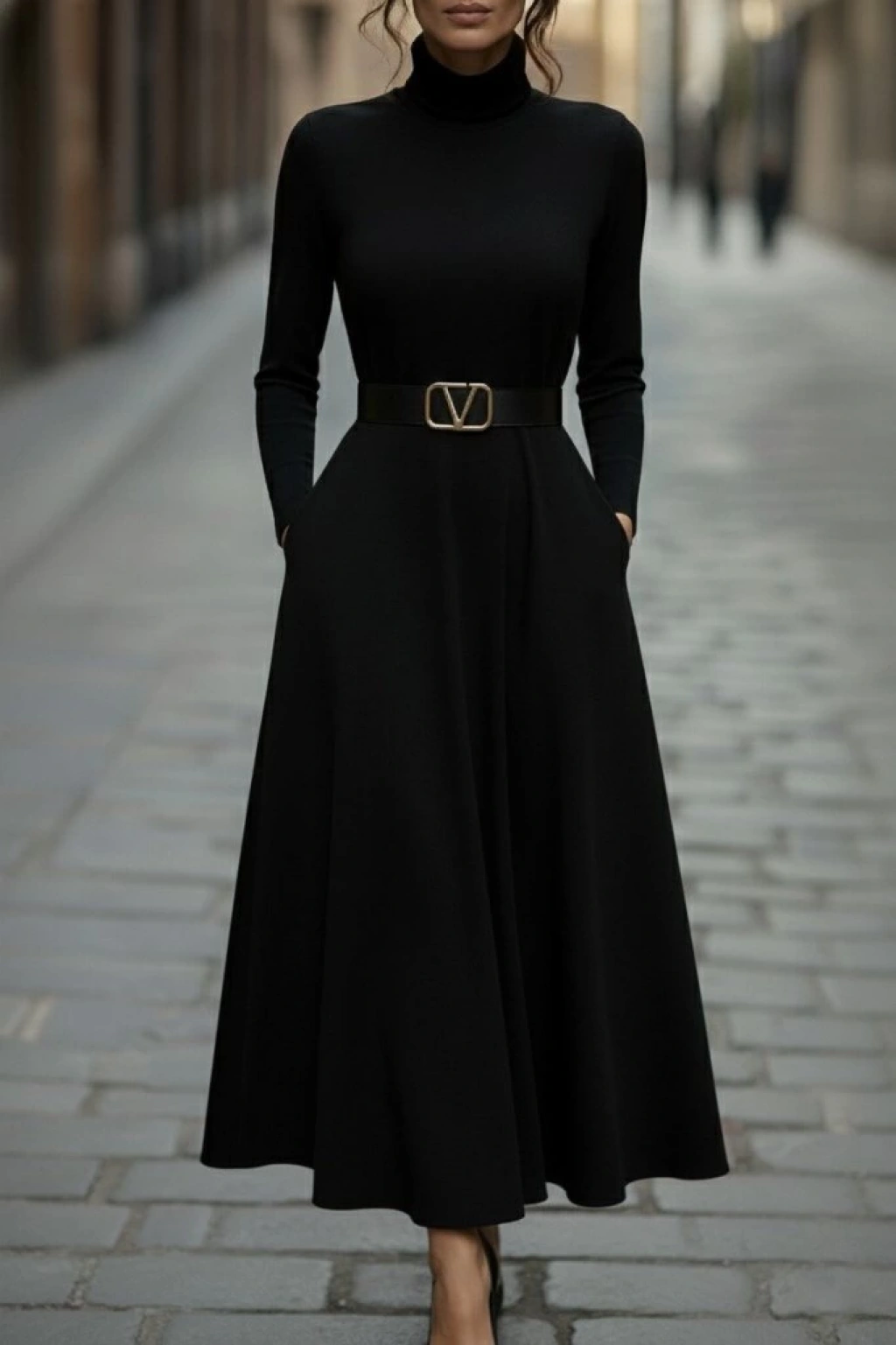 Kadın Uzun Kollu Balıkçı Yaka Uzun Akrilik Elbise