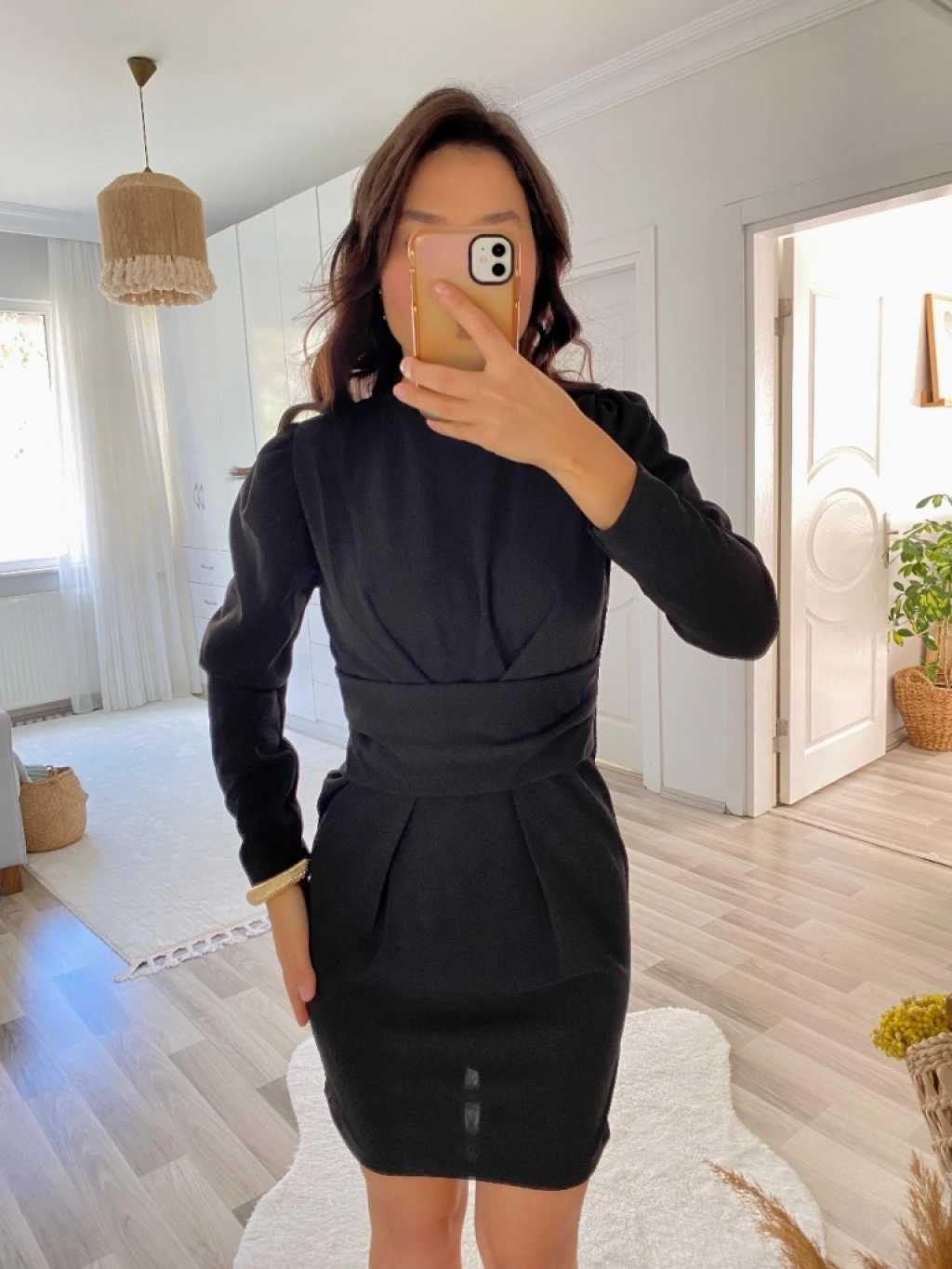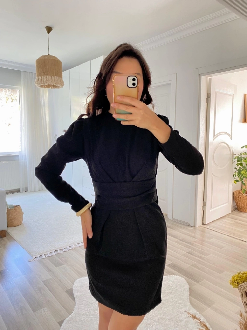 Kadın Uzun Kollu Bisiklet Yaka Bel Kemer Detay Ithal Krep Elbise