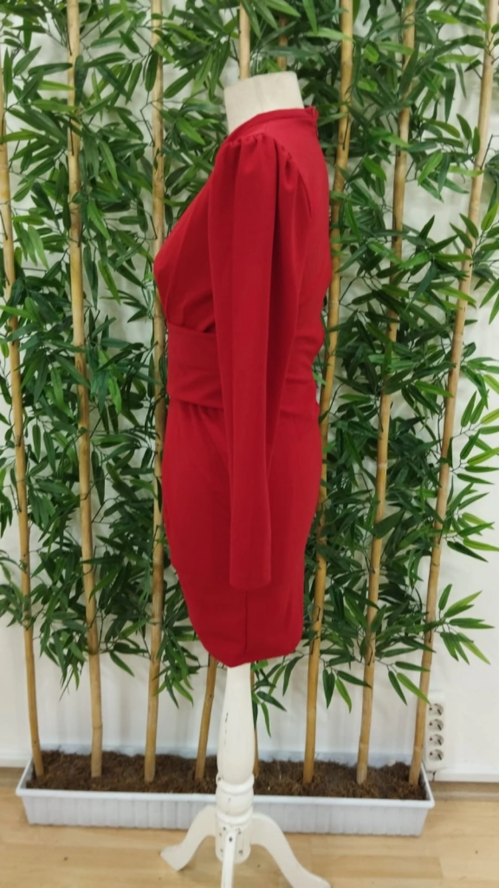 Kadın Uzun Kollu Bisiklet Yaka Bel Kemer Detay Ithal Krep Elbise