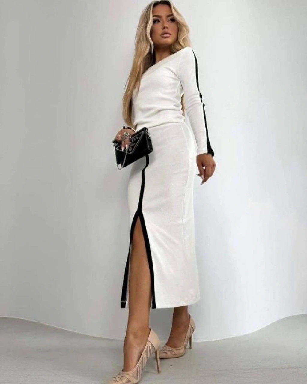 Kadın Uzun Kollu Bisiklet Yaka Kaşkorse Bluz Ve Yırtmaçlı Etek Ikili Takım