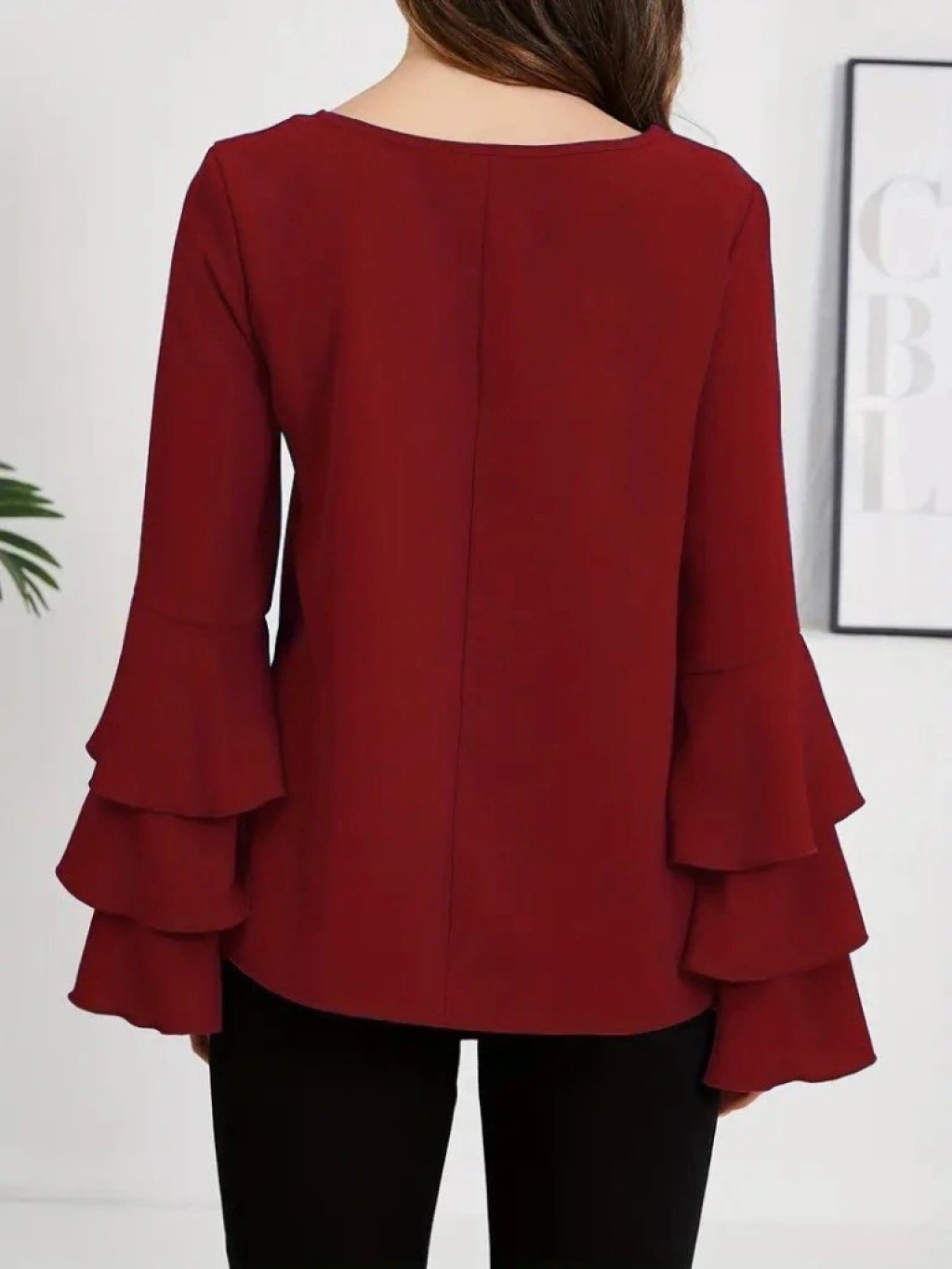Kadın Uzun Kollu Bisiklet Yaka Kollar İspanyol Volanlı Sandy Bluz