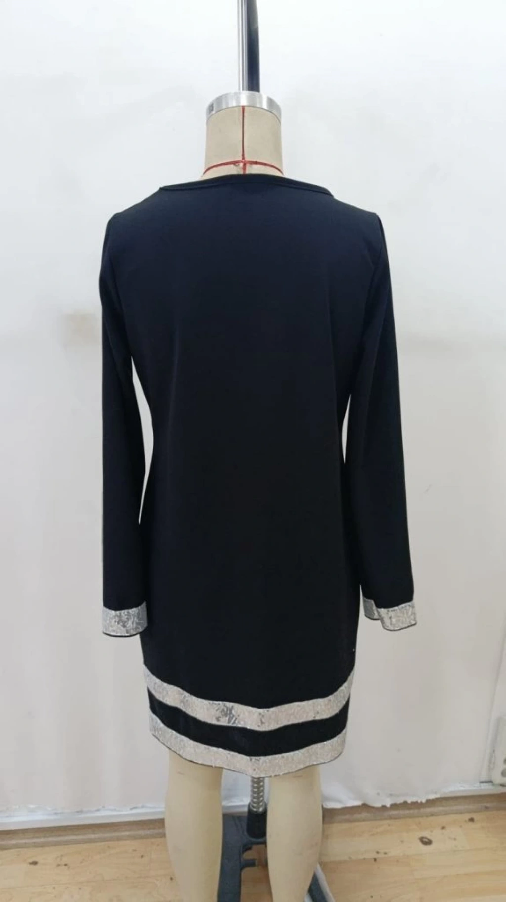 Kadın Uzun Kollu Bisiklet Yaka Mini Ithal Krep Elbise