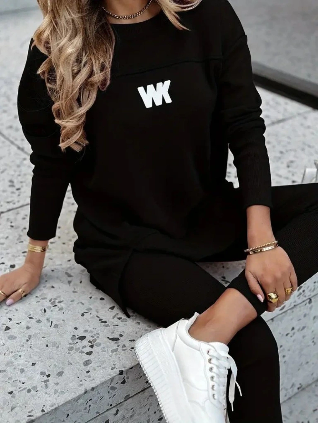 Kadın Uzun Kollu Bisiklet Yaka Nervurlu Viskon Iki Iplik Ve Tayt Pantolon Ikili Takım