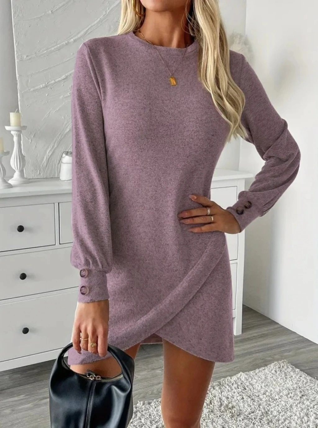 Kadın Uzun Kollu Bisiklet Yaka önden Asimetrik Kesim Detaylı Mini Yumoş Elbise