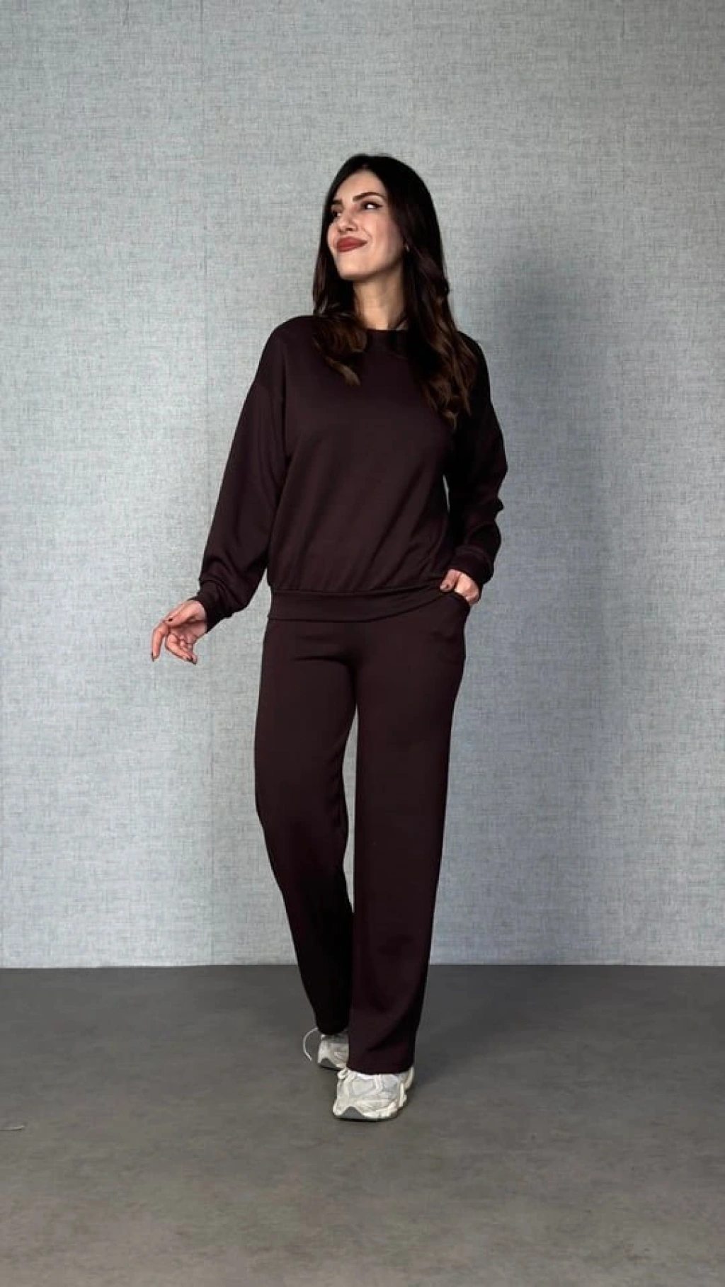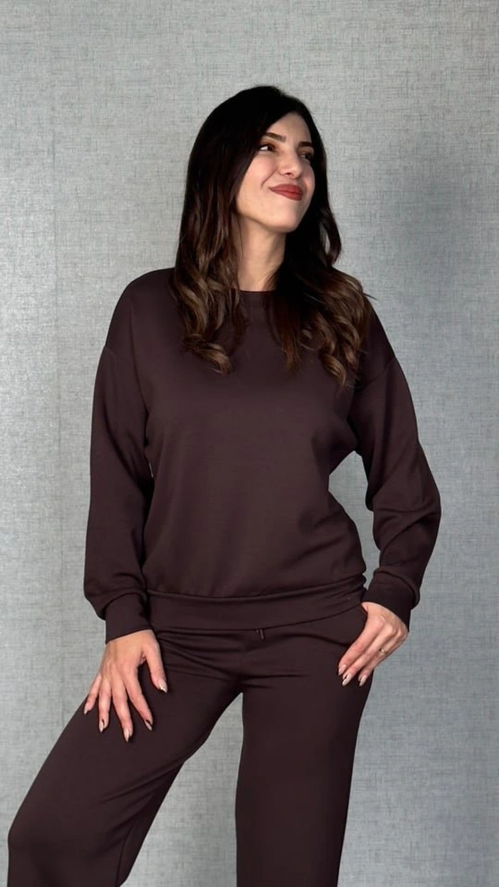 Kadın Uzun Kollu Bisiklet Yaka Viskon Iki Iplik Bluz Ve Pantolon Ikili Takım