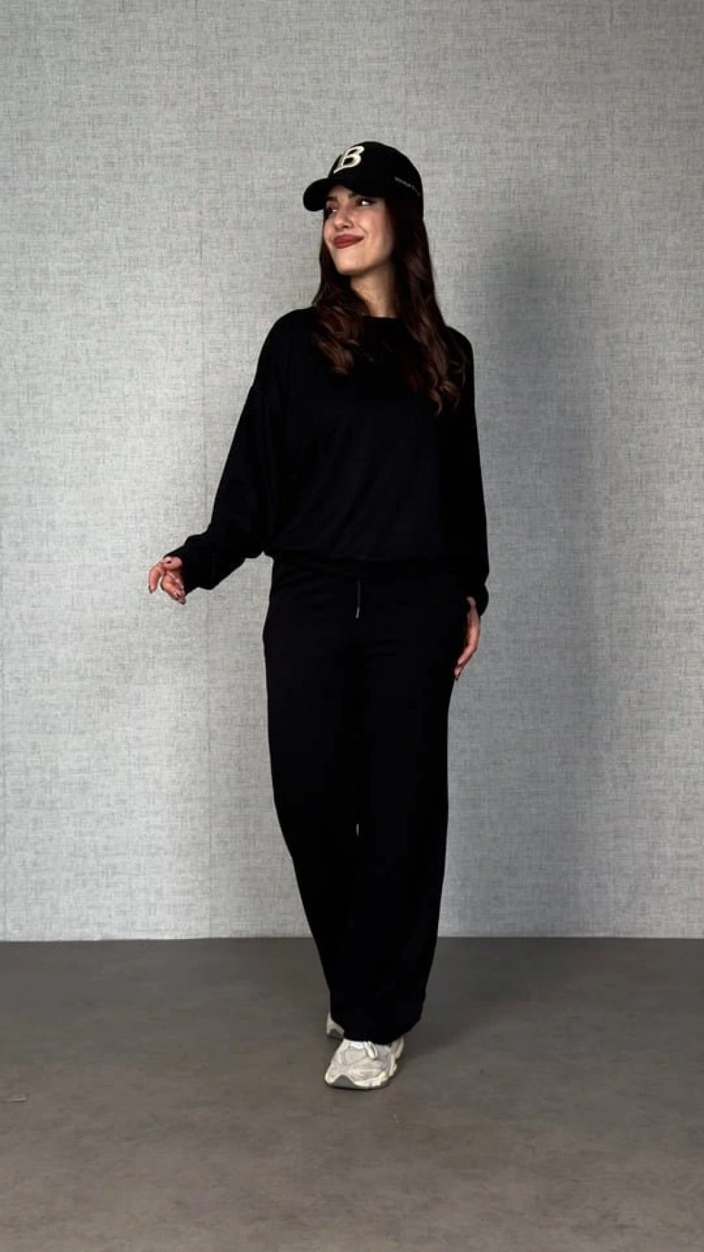 Kadın Uzun Kollu Bisiklet Yaka Viskon Iki Iplik Bluz Ve Pantolon Ikili Takım
