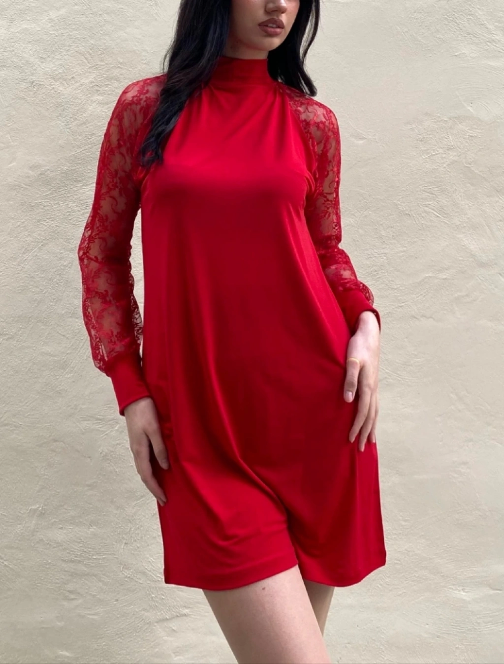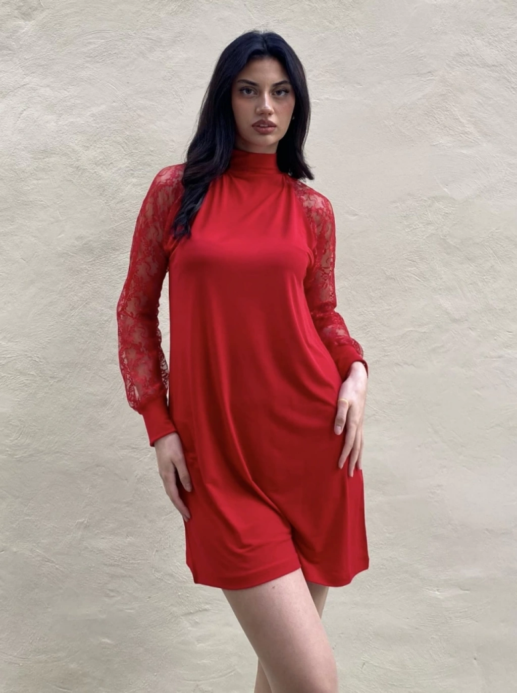 Kadın Uzun Kollu Damla Detaylı Sandy Mini Elbise