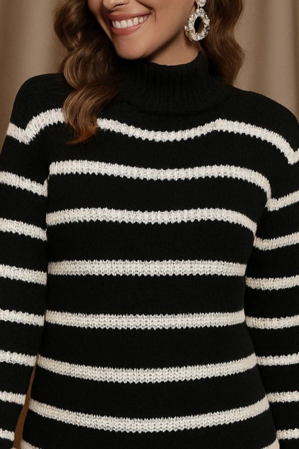 Kadın Uzun Kollu Degaje Yaka çizgili Sonya Iplik Mini Boy Triko Elbise (kemersiz)