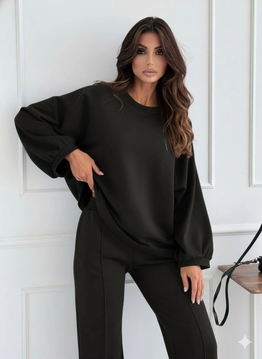 Kadın Uzun Kollu Geniş Kesim Modal Bluz Ve Pantolon Ikili Takım