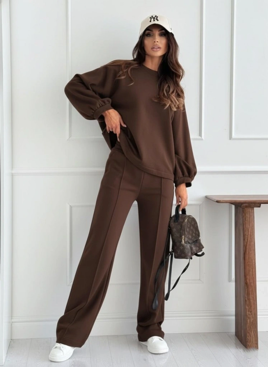 Kadın Uzun Kollu Geniş Kesim Modal Bluz Ve Pantolon Ikili Takım